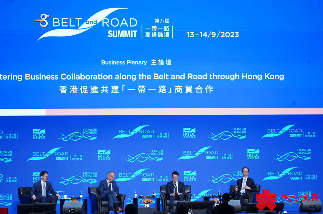 (大公文匯全媒體記者 王俊傑)今年是「一帶一路」倡議十周年,「一帶一路高峰論壇」以「攜手十載 共建共贏」為題,於灣仔會展舉行。來到今日(13日)下午,活動進入到「香港促進共建『一帶一路』商貿合作」的環節,並請來南豐集團董事長及新風天域集團董事長兼創始人梁錦松主持,馬來西亞雙威集團主席兼創辦人謝富年、施耐德電氣集團董事長趙國華和中國交建集團有限公司董事及總經理王海懷擔任演講嘉賓。