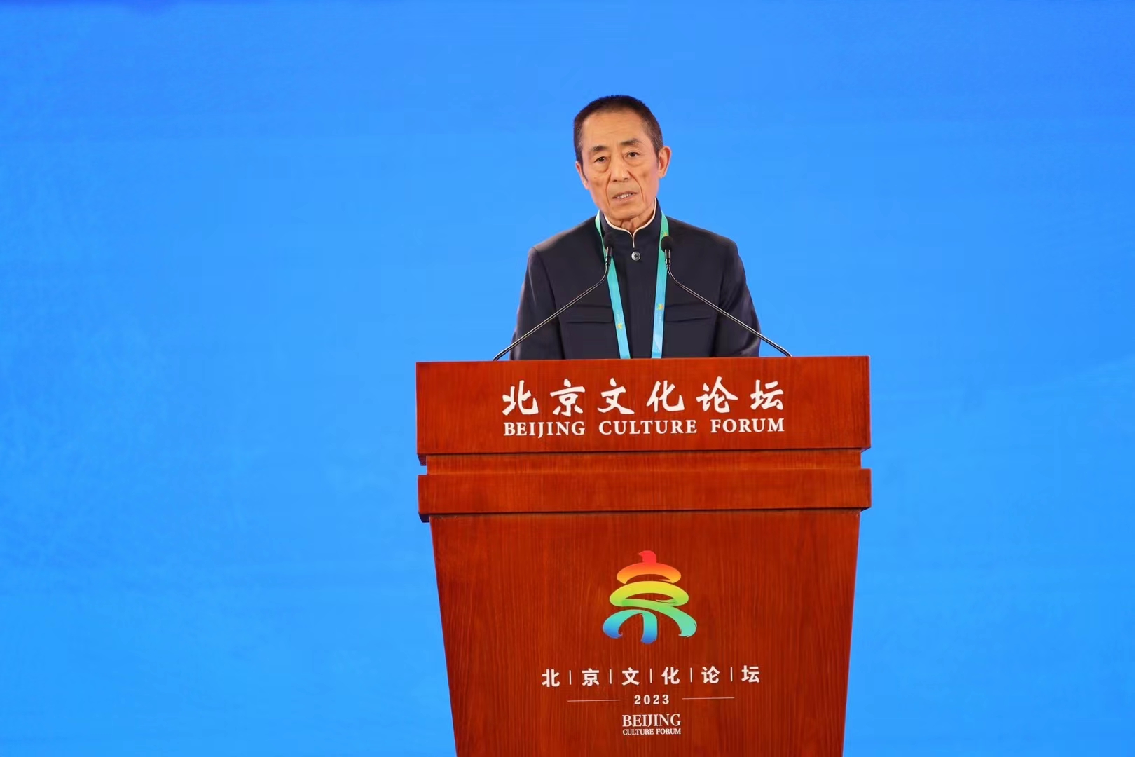 內地著名導演張藝謀在2023北京文化論壇主論壇發表演講。(大公文匯網記者張帥攝)