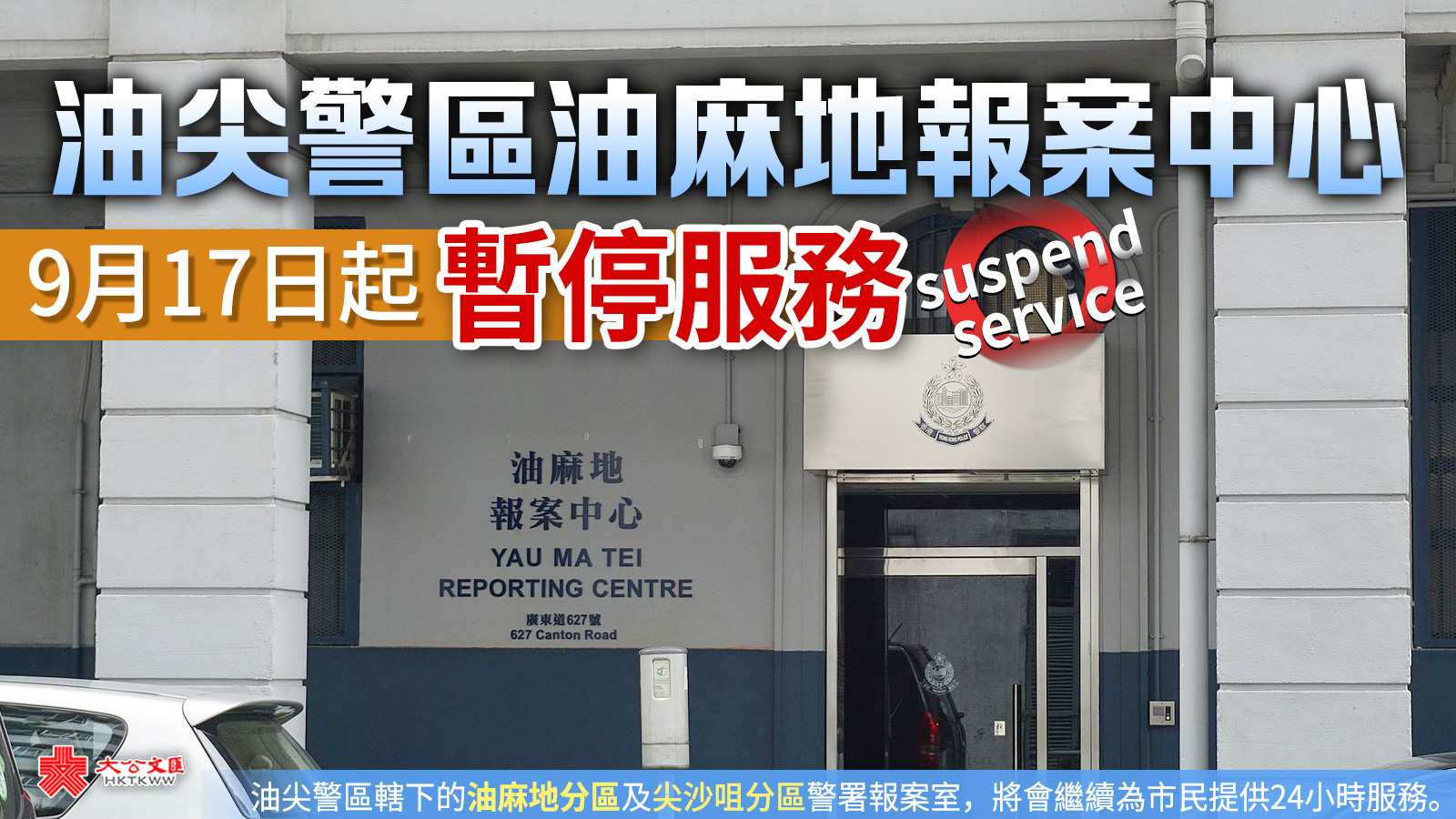 大公文匯全媒體報道,警方今日(15日)表示,為更有效調配資源,油尖警區油麻地報案中心將於9月17日(星期日)起暫停服務。倘若需要緊急服務,市民可致電999求助。