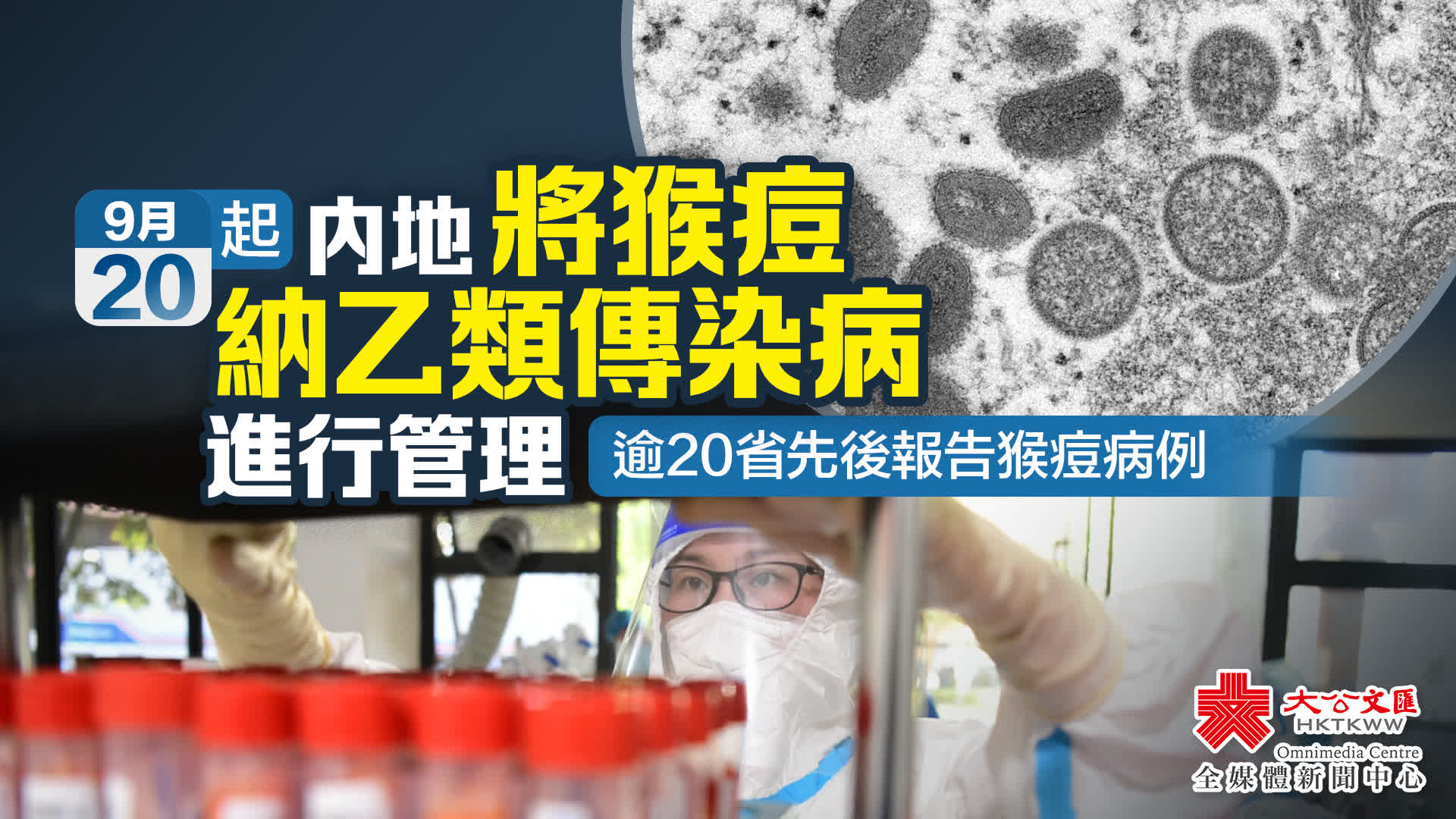 國家衞生健康委員會今日(15日)發布公告,根據《中華人民共和國傳染病防治法》相關規定,自2023年9月20日起將猴痘納入乙類傳染病進行管理,採取乙類傳染病的預防、控制措施。