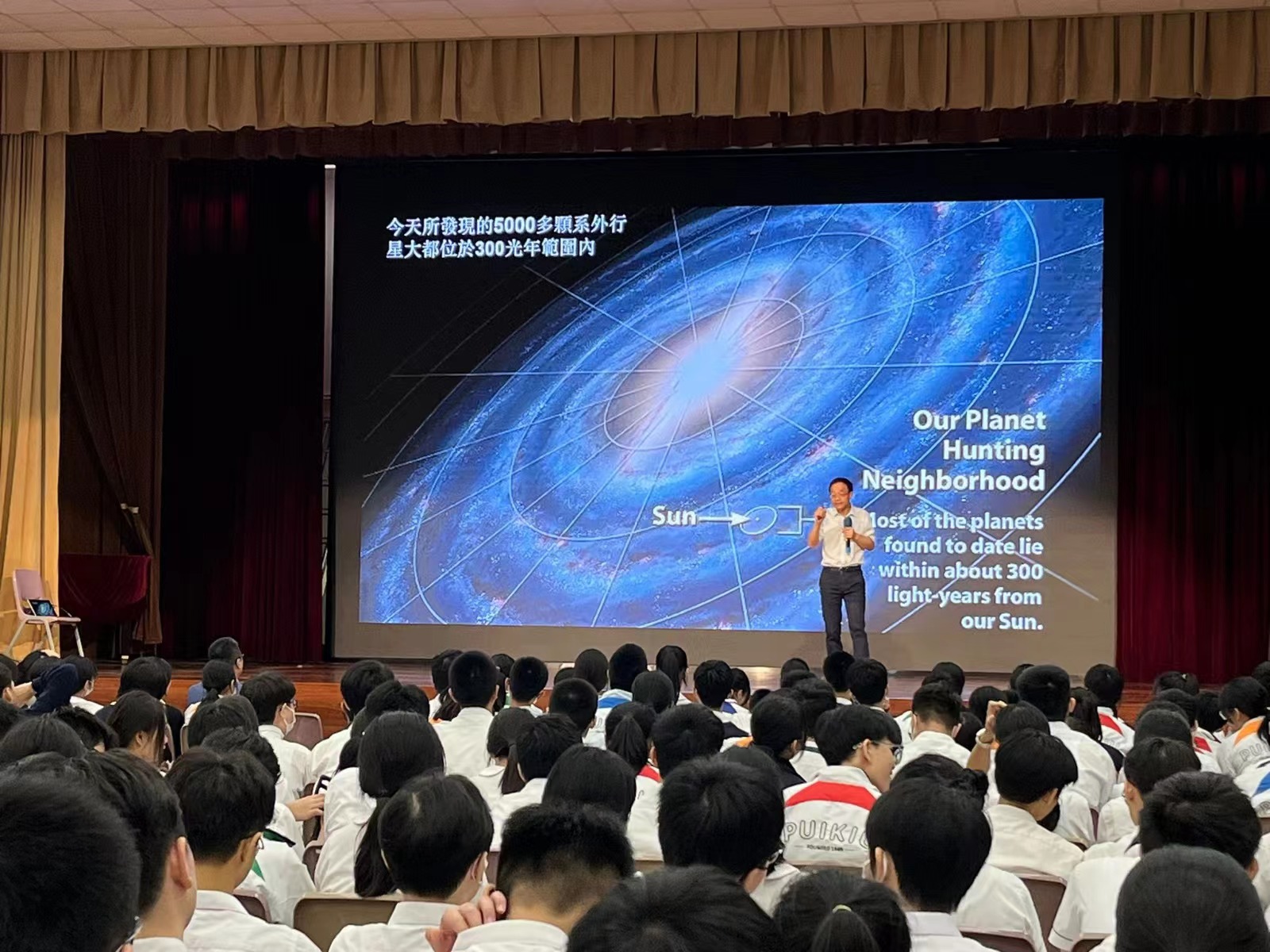 此外,武向平院士也探討了一個引發學生們思考的話題:「我們在宇宙中孤單嗎?」他介紹了目前地外文明搜尋的三種主要方法,包括尋找宜居行星、尋找生命分子,以及截獲地外文明的通訊信號。這些引人入勝的主題激發了學生們對外太空和地外文明的好奇心,並啟發了他們對未來科學探索的熱情。武院士期待同學們始終能保持對科學的興趣和求知精神,朝着科研方向邁進發展。