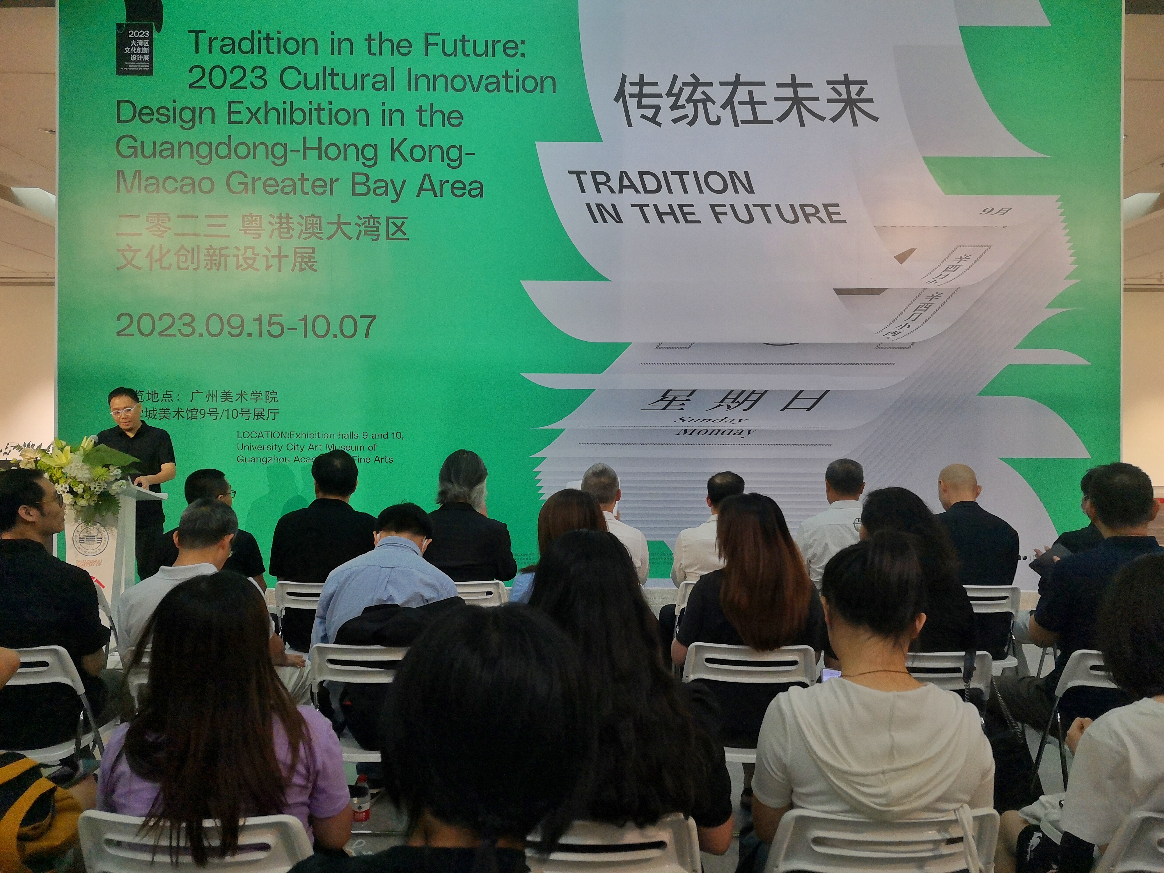 (大公文匯網記者李紫妍 廣州報道)今日(9月15日),「傳統在未來——2023粵港澳大灣區文化創新設計展」在廣州美術學院大學城美術館開幕,展覽匯集來自三地多所藝術高校的122件師生作品,並專設「港澳作品」板塊,展出二十餘件港澳師生作品。展覽聚焦灣區傳統文化與現代元素的交融,通過平面藝術、數字媒體、交互設計、3D打印等多種形式對嶺南文化及灣區文化進行再創作,以新技術、新理念、新形式等再度激活地方文化。