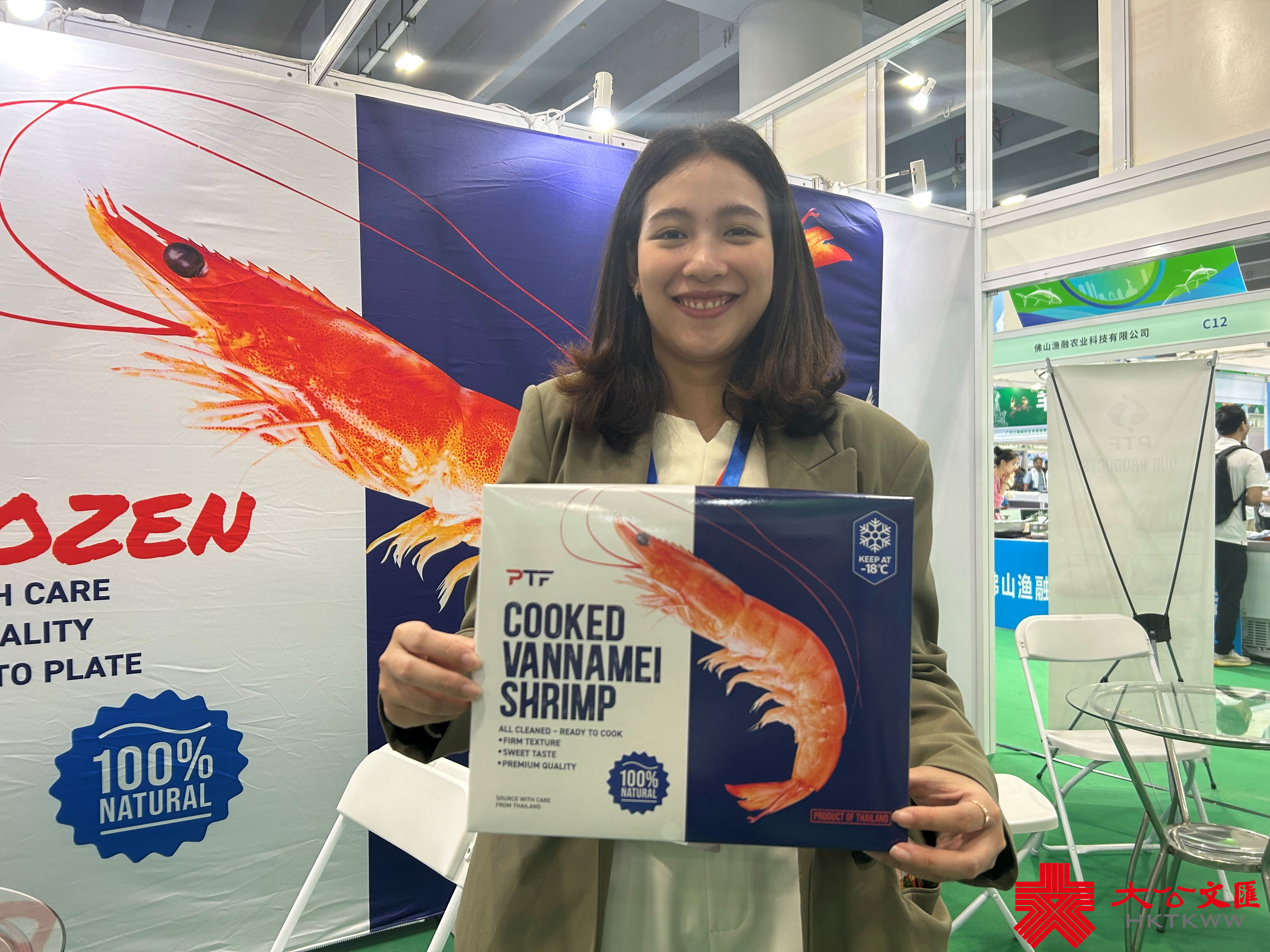 泰國碧帝食品集團(PITI FOODS)是一家集捕撈、加工、銷售於一體的大型水產集團,此次帶來了對蝦、草蝦以及眾多海產熟食產品。公司負責人介紹,該集團主打中高端產品,而中國消費市場對相關產品需求提升。此次參展,全方位對接中國代理商,期待首次打入中國內地市場。