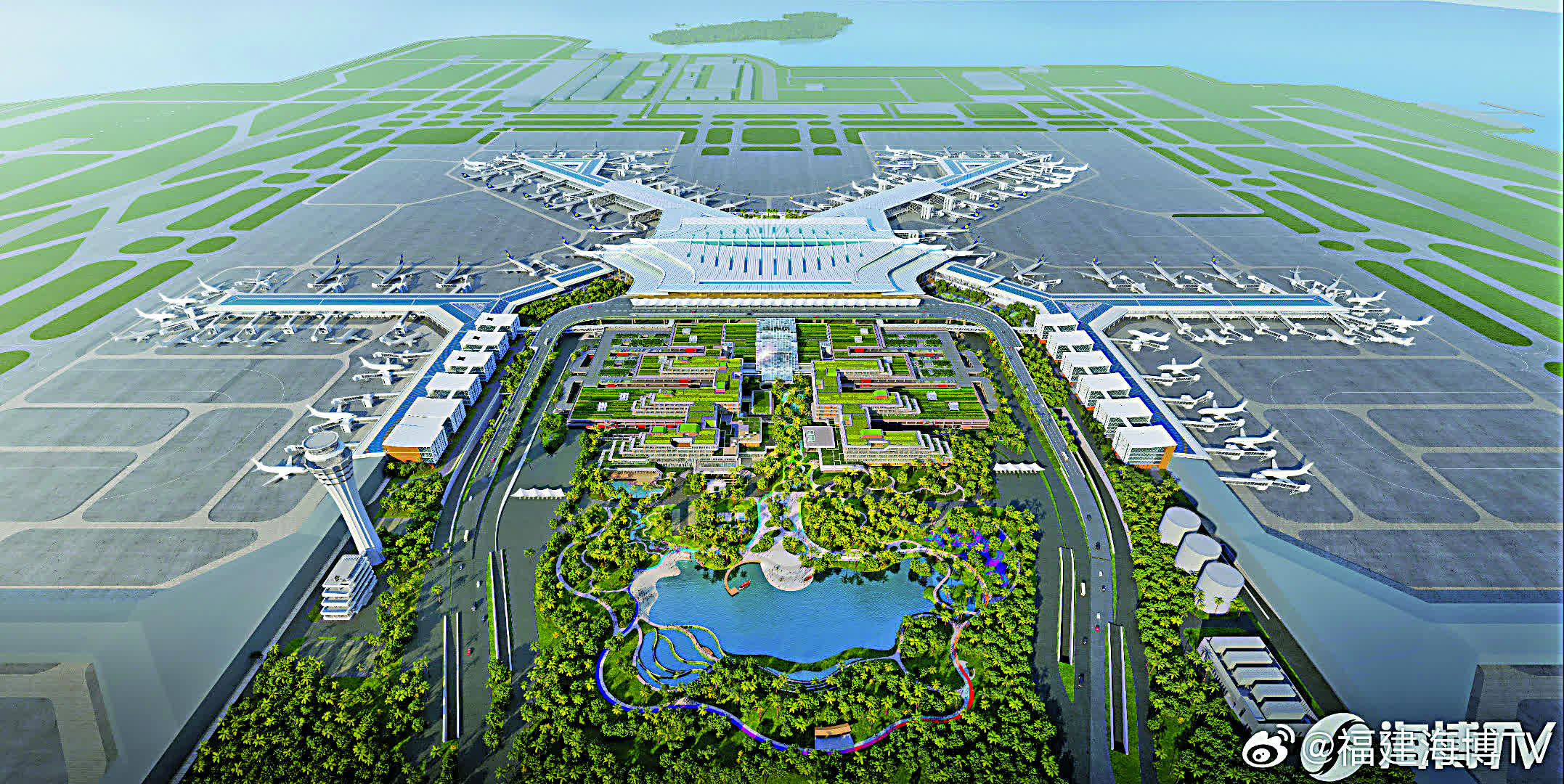 2014年11月,廈門翔安國際機場大嶝島場址獲批;2022年1月4日,廈門翔安國際機場全面開工建設。機場航站樓面積55萬平方米,停機坪機位196個,同時建設2條遠距跑道。可滿足年旅客吞吐量4500萬人次、貨郵吞吐量75萬噸、飛機起降38萬架次的使用需求。該機場預計通航時間為2026年底。