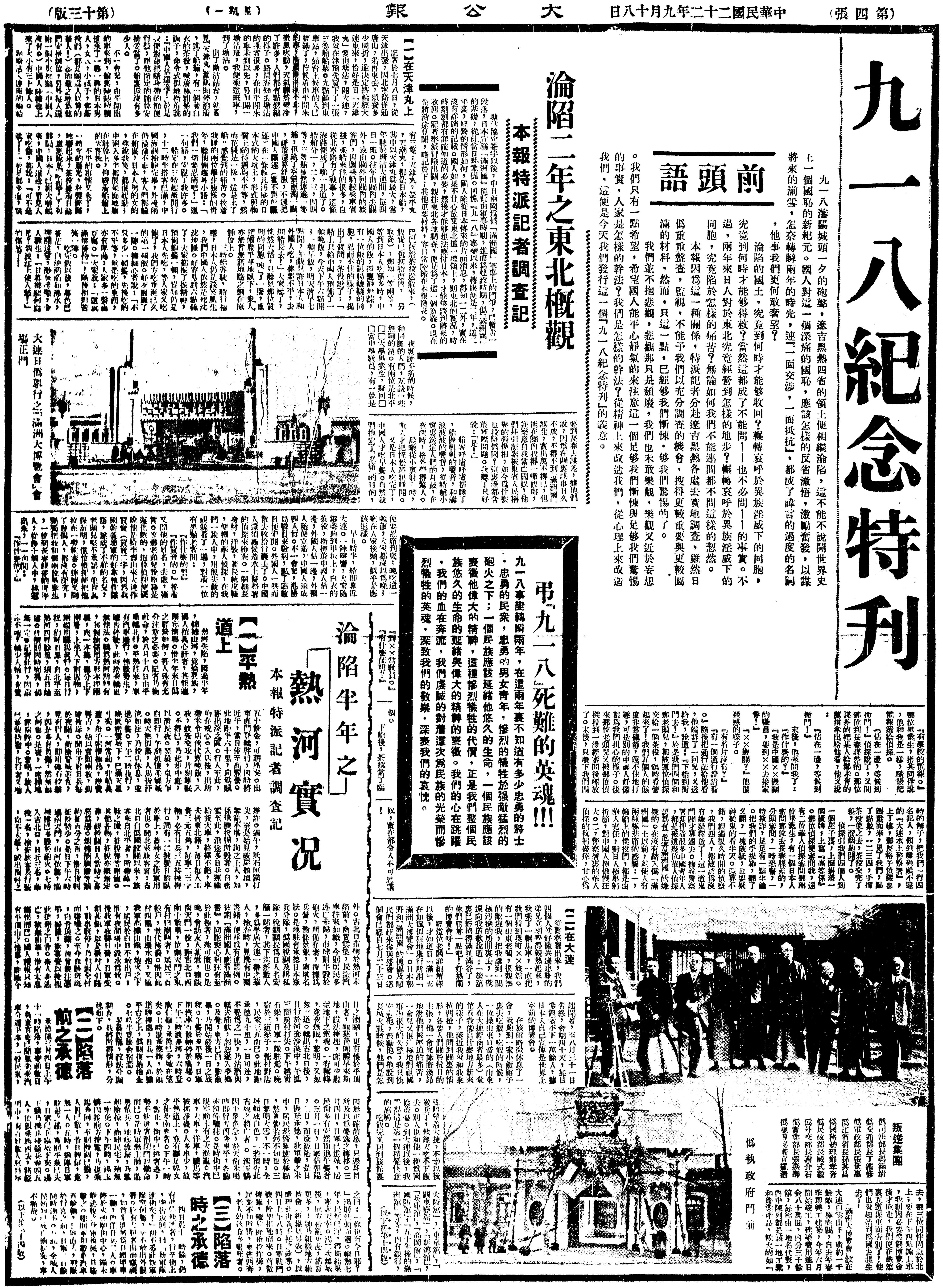 大公文匯全媒體報道,9月18日,每個中國人都該銘記的日子。92年前的今天(9月18日),「九一八事變」爆發,中國人民從此開始了艱苦卓絕的抗日戰爭。日本在中國製造「九一八事變」後,挑起侵華戰爭;中華民族上下一心奮勇抵禦日本入侵者,1945年8月取得抗戰勝利,這是中國近代史不能磨滅的一頁。
