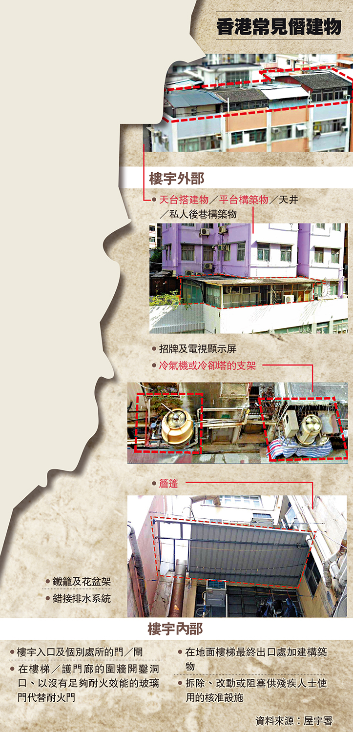 屋宇署監管違章建築,但僭建始於何時,無人說得清,但有一點很肯定:在香港,僭建是最普遍的違法問題,每次僭建新聞出來都會引發軒然大波。