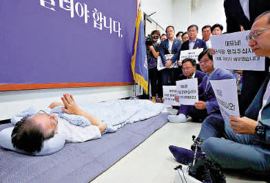 韓媒稱,由於體力下降,從絕食的第11天起,李在明選擇躺下示威。共同民主黨方面表示,他的血糖水平已降至嚴重威脅健康的程度,黨友和醫生勸他住院,但他堅持繼續絕食抗議。14日,國民力量黨黨首金起炫首次勸說李在明恢復進食。他表示,最大在野黨黨首在需要審查政府國政運營的重要國會期絕食是不可取的,「無論出於何種原因,都鄭重要求您停止損害健康的絕食行動。」