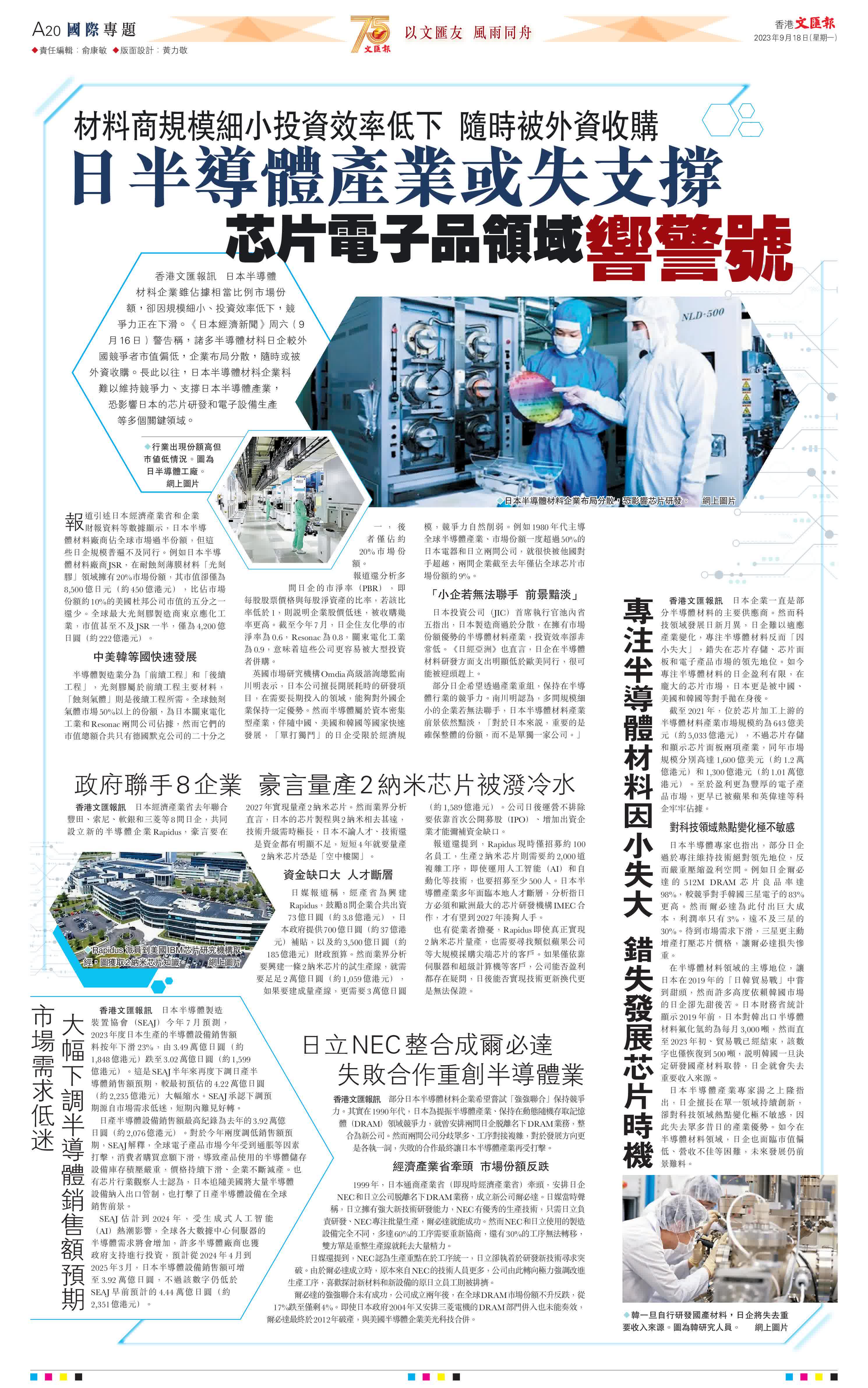 (來源:香港文匯報A20:國際專題 2023/09/18)