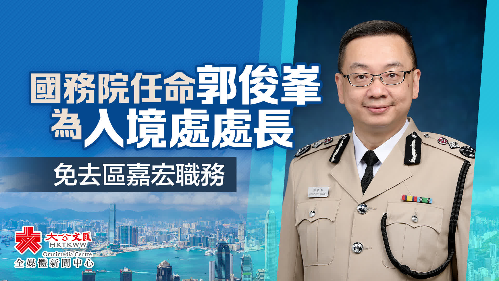 據新華社報道,依照香港基本法有關規定,根據香港特別行政區行政長官李家超的提名和建議,國務院9月13日決定,任命郭俊峯為入境事務處處長,免去區嘉宏的入境事務處處長職務。