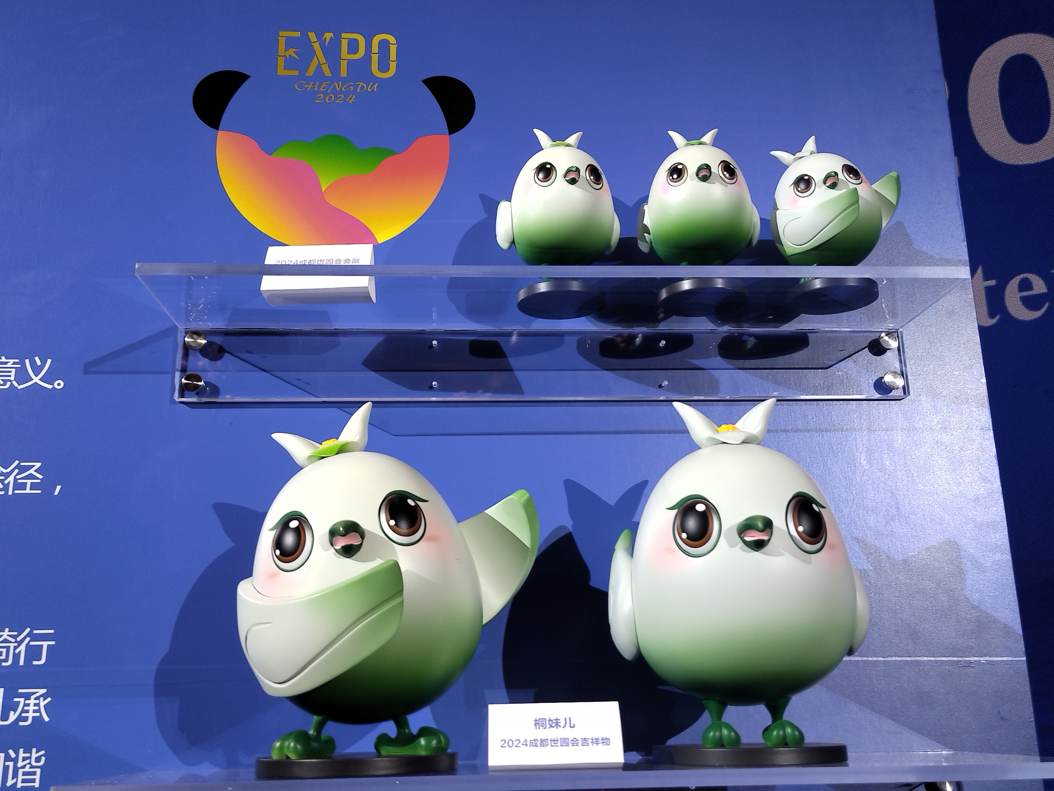 在新聞發布會上,成都世園會的會徽、吉祥物、會花也正式亮相。據了解,成都世園會標誌物徵集工作於2022年6月24日啟動,至2022年9月7日共收到投稿作品約3000件。成都世園會會徽以熊貓頭部輪廓為基礎,在設計中融入銀杏、芙蓉花、黃金竹等多類植物元素,充分展示了成都地區豐富的生物多樣性。吉祥物「桐妹兒」核心創意來自中國特有的孑遺植物珙桐(又稱「鴿子花」)和三星堆「青銅神鳥」,寓意和平友好、包容互鑒,富有深刻的文化內涵和巴蜀特色。根據大眾投票、專家意見,結合成都本土植物特色,確定成都市花芙蓉為成都世園會會花,表達美麗高潔、團圓美滿之意。