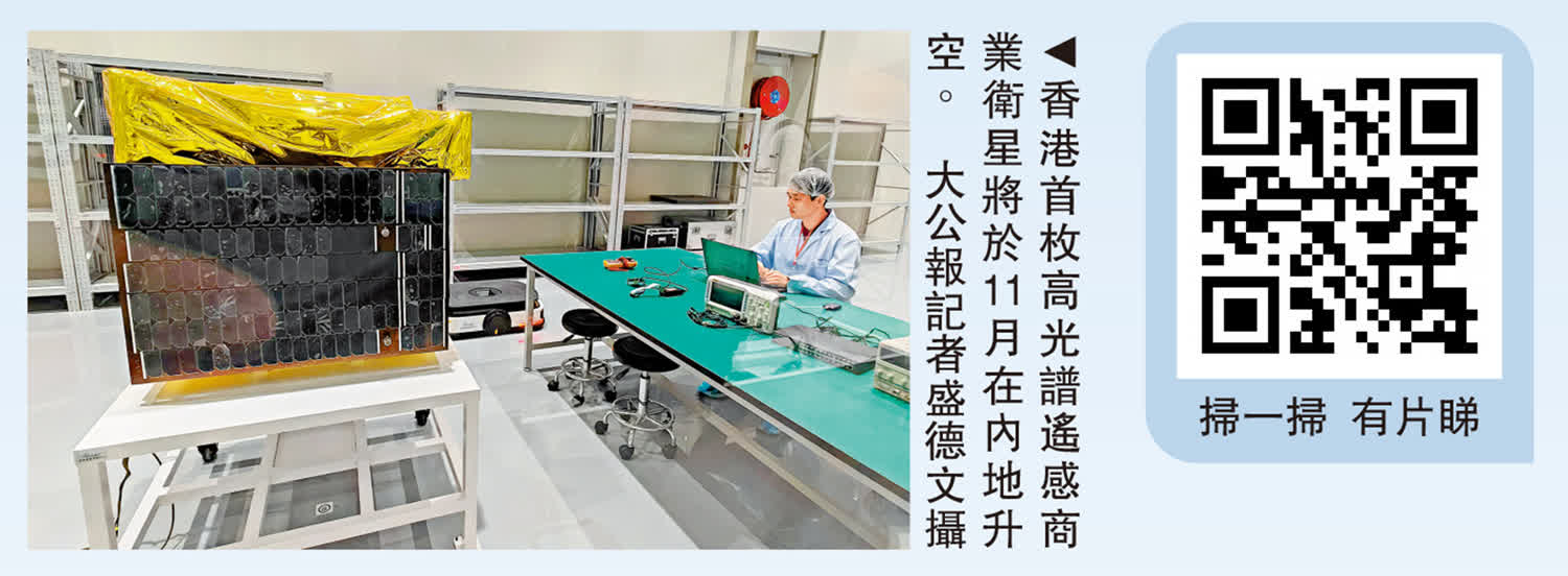 本港首顆具有國際高水準的高光譜遙感商業衛星,昨日在將軍澳科學園先進製造業中心的「香港衛星製造中心」完成總裝、測試和下線,將於11月底在廣東陽江海上發射升空。