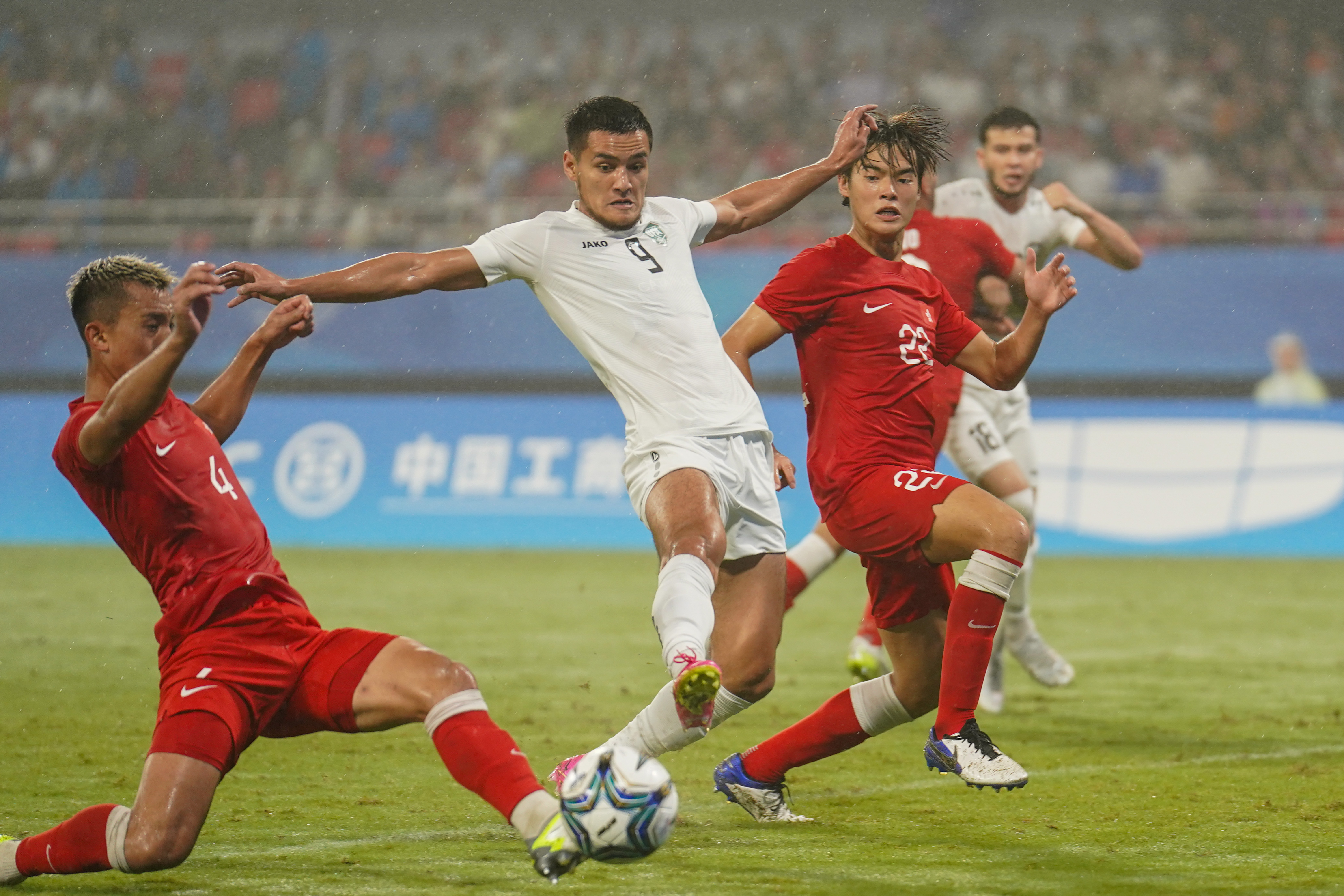 9月初香港U23曾於亞洲盃U23外圍賽以0:10大敗於烏茲別克腳下,今場兩隊再次相遇,有超齡球員坐鎮的港隊表現明顯大有改善,上半場雖然稍處下風,但憑藉門將謝家榮的神勇表現,撲出艾堅洛夫的近門和罰球力保不失。