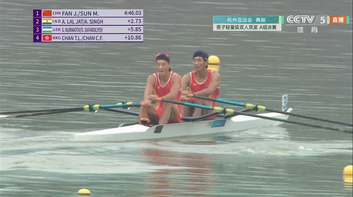 據央視新聞報道,9月24日,杭州第19屆亞運會,賽艇男子輕量級雙人雙槳決賽,中國組合范俊傑/孫滿奪得金牌。