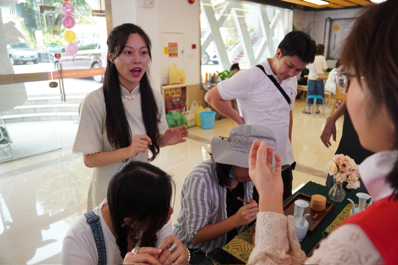 非遺廣彩傳承人現場教授廣彩技藝,還有茶藝老師指導港澳青年參與宋式點茶體驗,在熱鬧的氛圍中領略嶺南文化的獨特魅力。