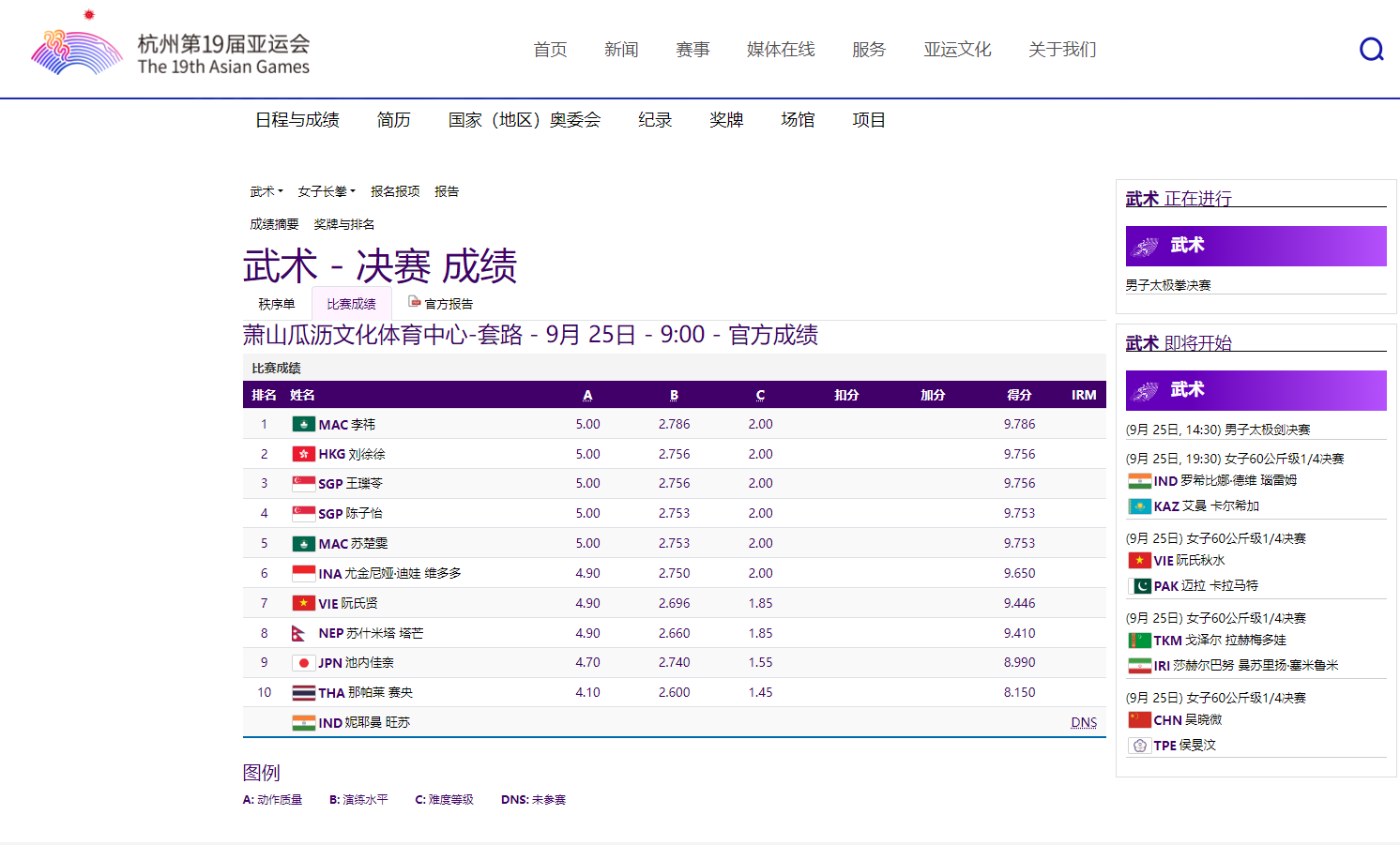 關鍵詞:杭州亞運港隊女子長拳劉徐徐銀牌