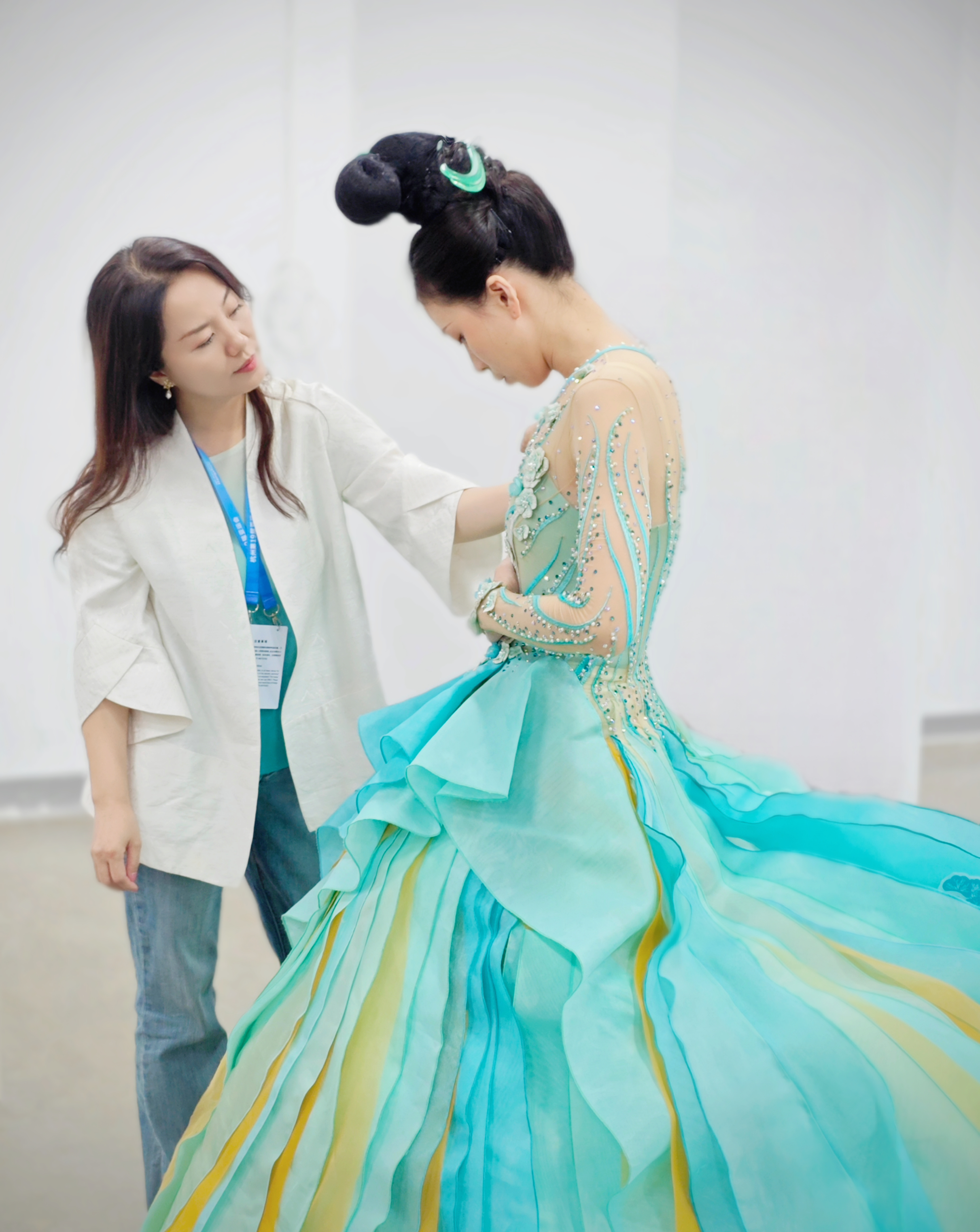 楚艷對記者表示,「水天碧」長裙是她對江南色彩美學和宋韻意象的一個集中表達。