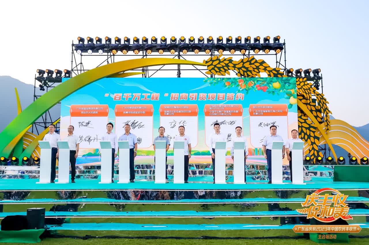 主會場活動處處體現農民主體、農業主線、農村主場。抖音集團發布助力「百千萬工程」計劃,用網絡傳播的多元方式助力鄉村振興新發展,助力更多「粵字號」農產品走出去。舉行「百千萬工程」招商引資項目和珠三角產業轉移項目簽約儀式,為「百千萬工程」及「三農」發展注入時代新動能。響亮發出「我為家鄉添片綠」倡議,邀請社會各界人士作為參與綠美廣東生態建設的「代言人」,營造全社會參與「大地植綠、心中播綠、全民享綠」的綠美新風尚。來自全省十位「百千萬工程」縣鎮村及涉農企業代表上台分享豐收故事,通過一個個小故事透視廣東鄉村振興大變化。