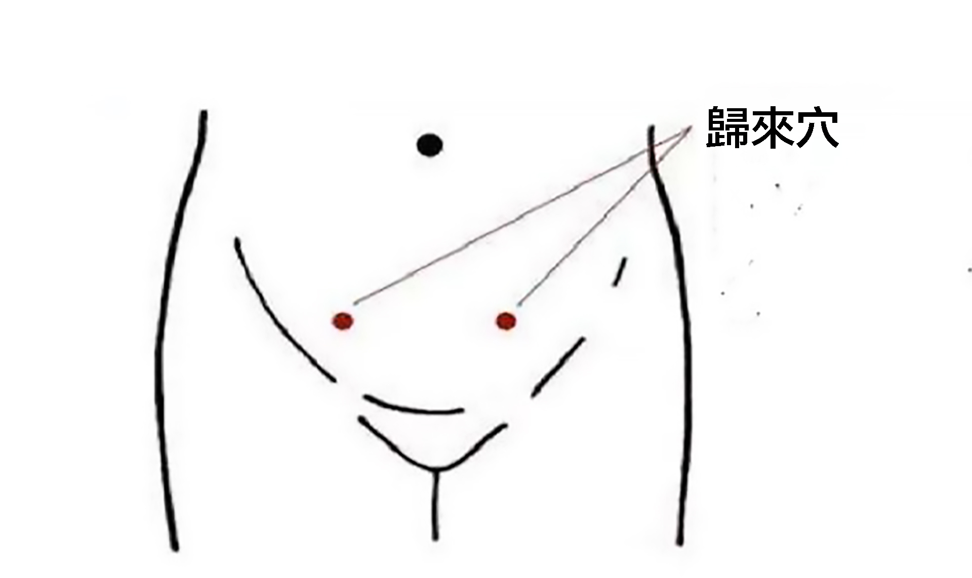 子宮、歸來穴位於下腹部,可活血通經,改善子宮、卵巢血供 。