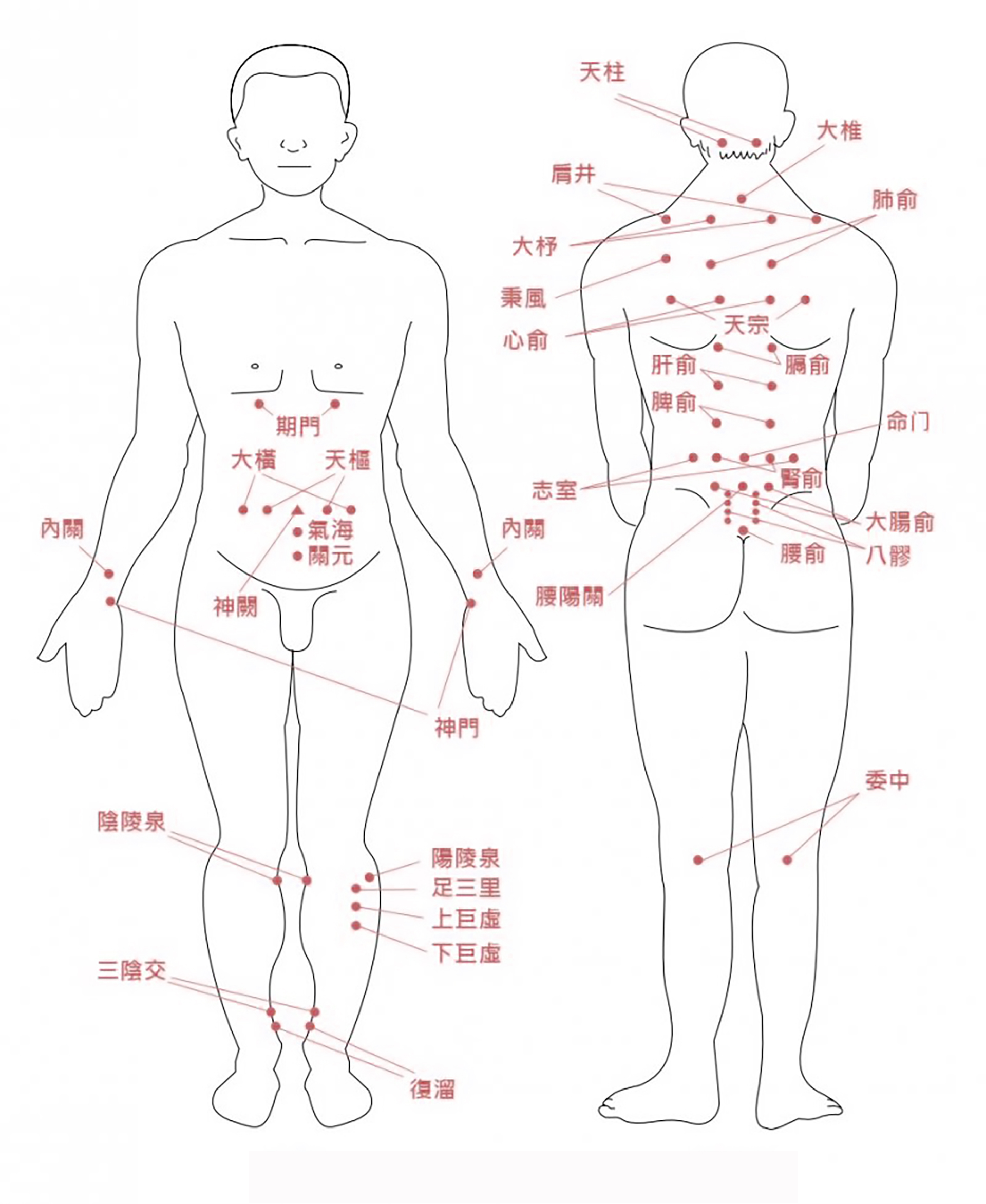 若肝鬱,緊張、焦慮可加肝的背俞穴肝俞、肝經的原穴太沖、肝的募穴期門可疏肝、養肝,舒緩情緒。