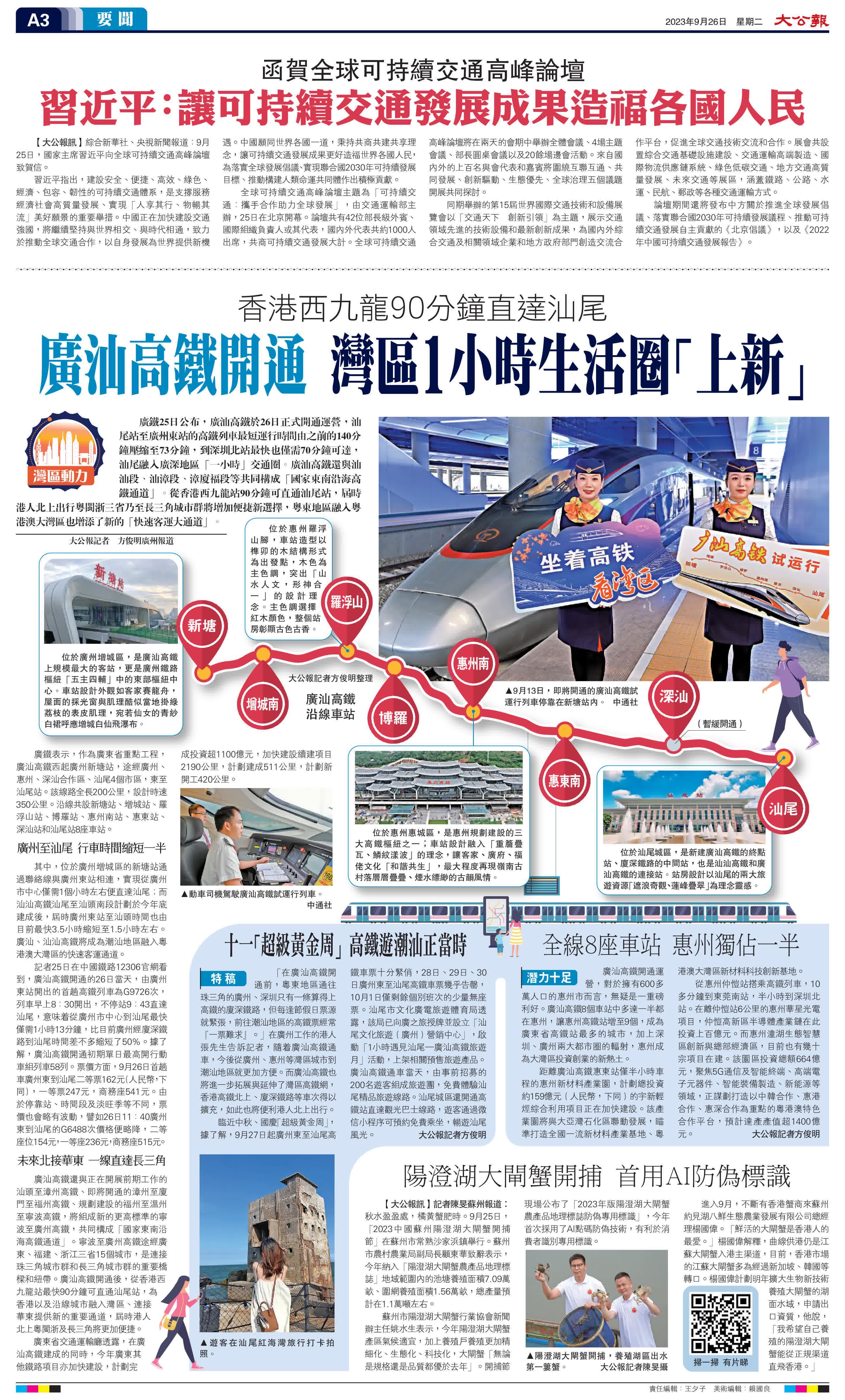 (來源:大公報A3:要聞 2023/09/26)