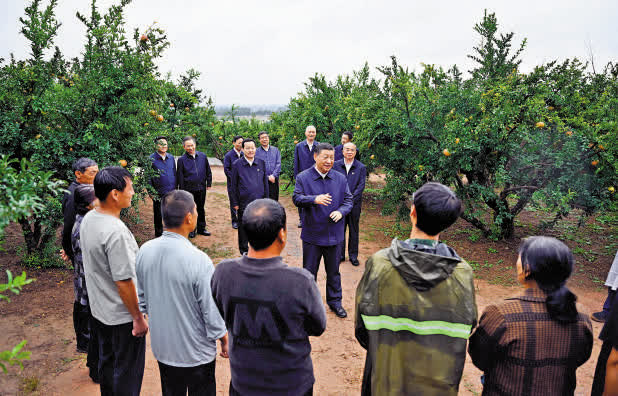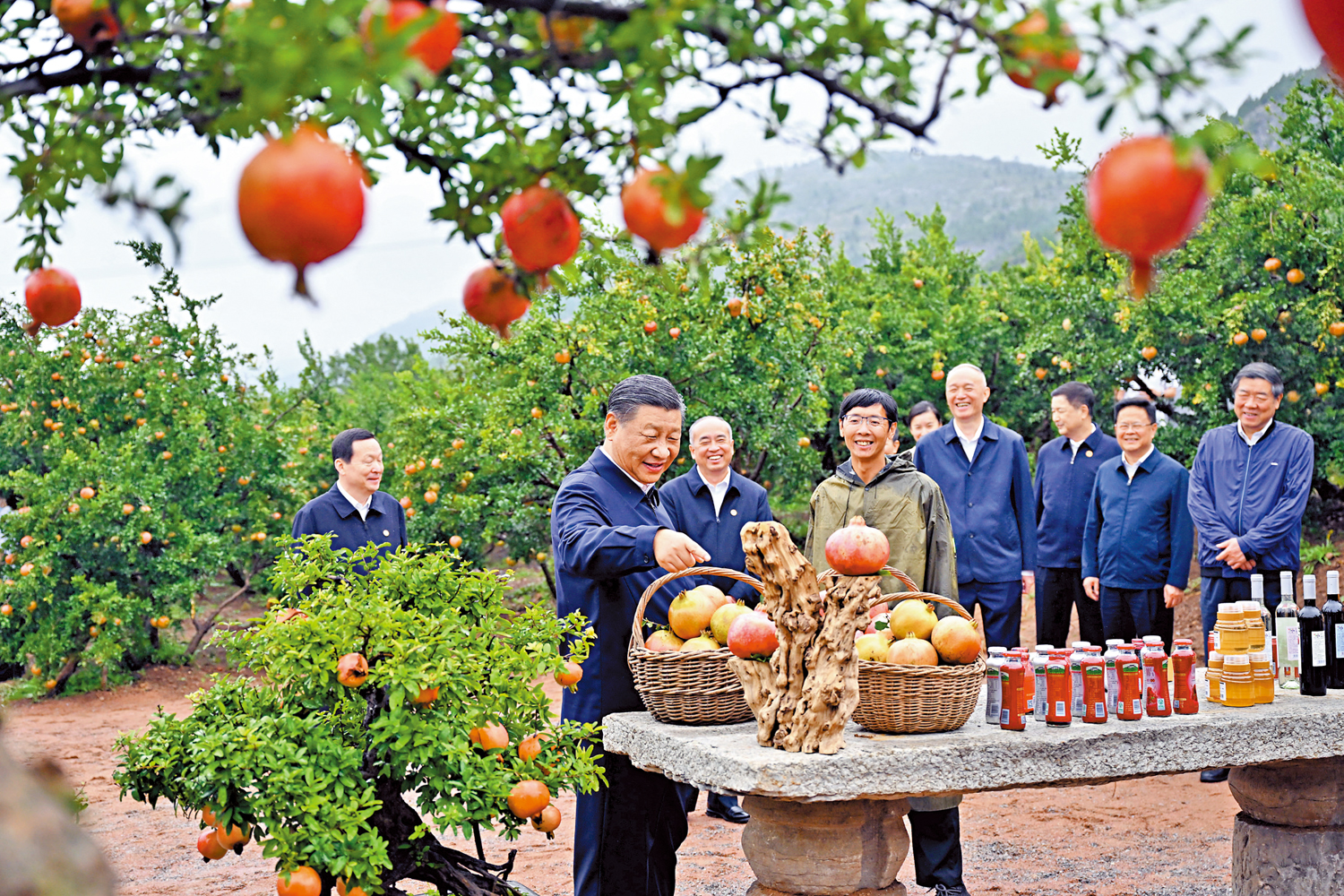 9月24日下午,在返京途中,習近平在山東省委書記林武和省長周乃翔陪同下來到棗莊市考察。棗莊是我國石榴集中連片種植面積最大、品種最多、產業鏈最完整的地區之一。
