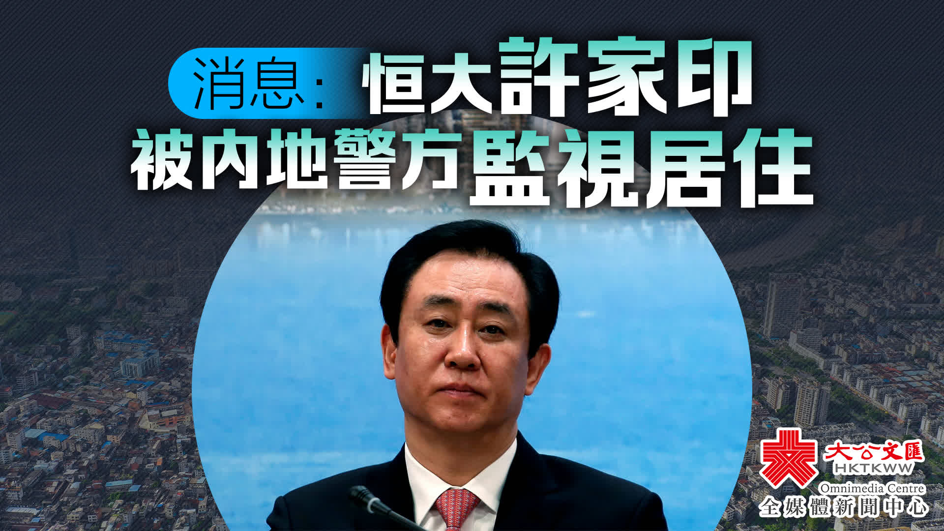 大公文匯全媒體報道,據彭博社引述知情人士指出,債台高築的內地地產開發商恒大集團主席許家印已被內地警方監視居住中。