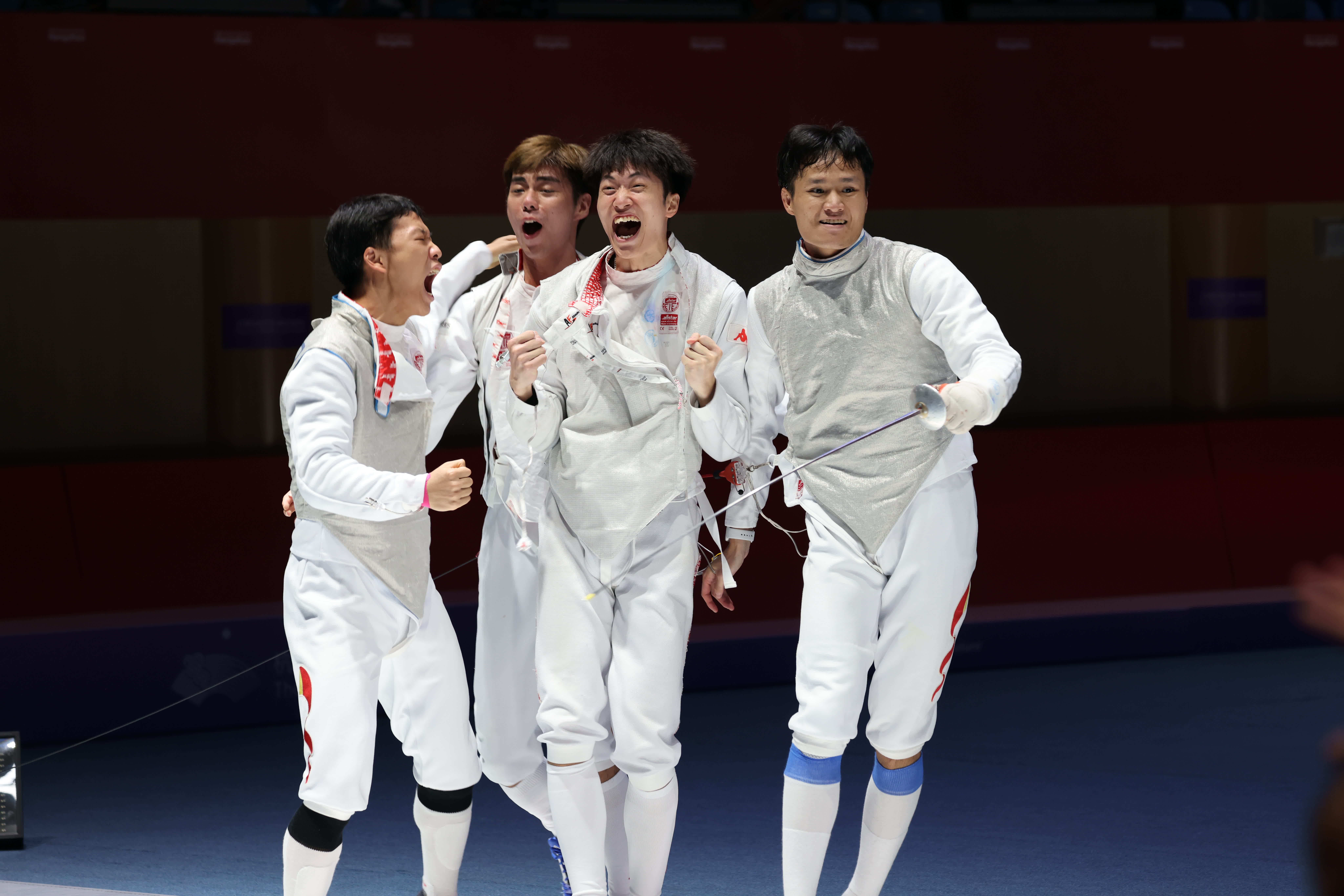 (大公文匯網記者 郭正謙)杭州亞運男子花劍團體賽國家隊於準決賽上演驚天逆轉。國家隊四強面對日本早段雖然一度落後8分,不過吳斌第二次上場後卻在敷根祟裕身上打出一波13:2成功反超前,最後雙方打成44:44平手下,壓軸出場的陳海威於決一劍奠定勝局,助國家隊以45:44擊敗日本晉身決賽。