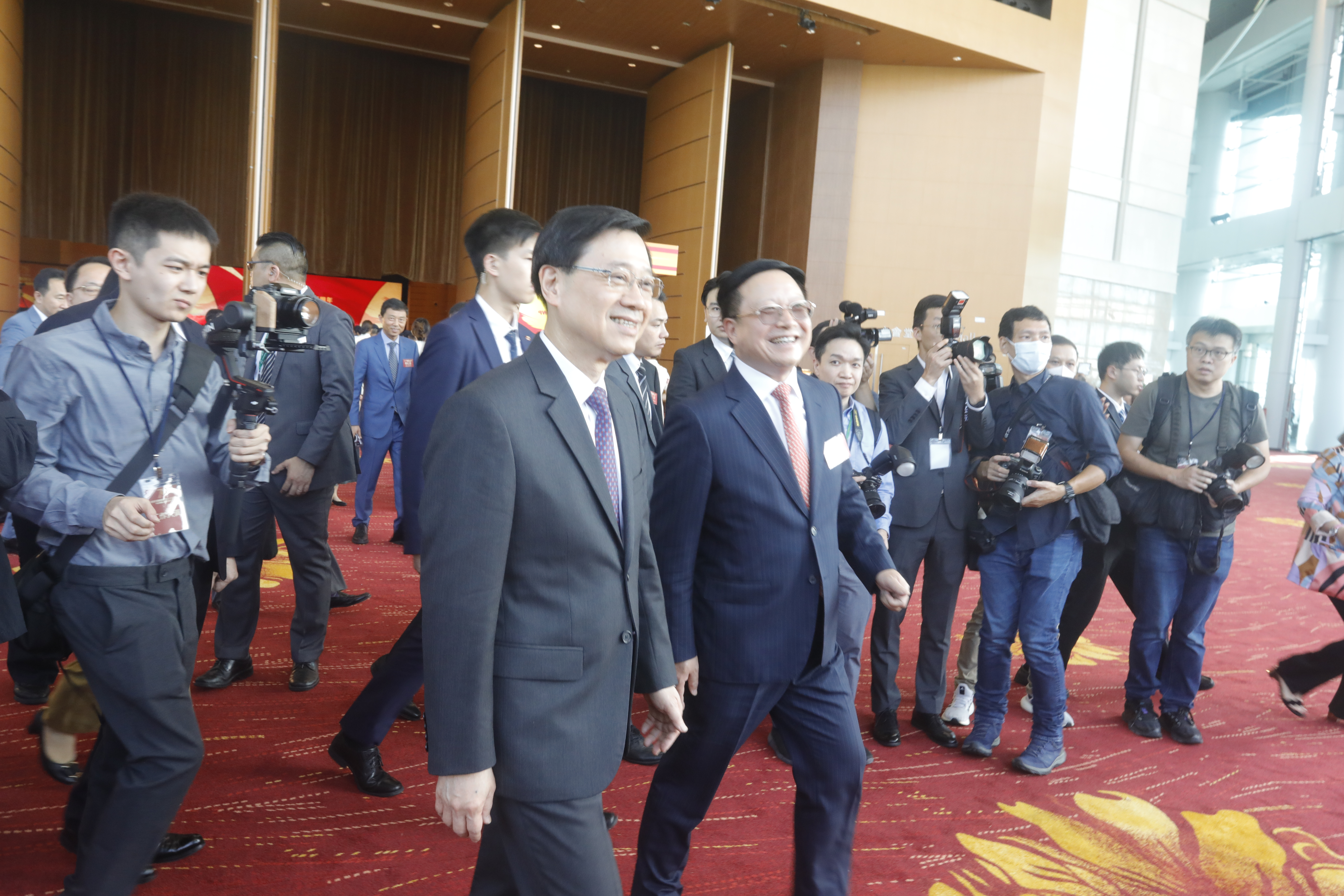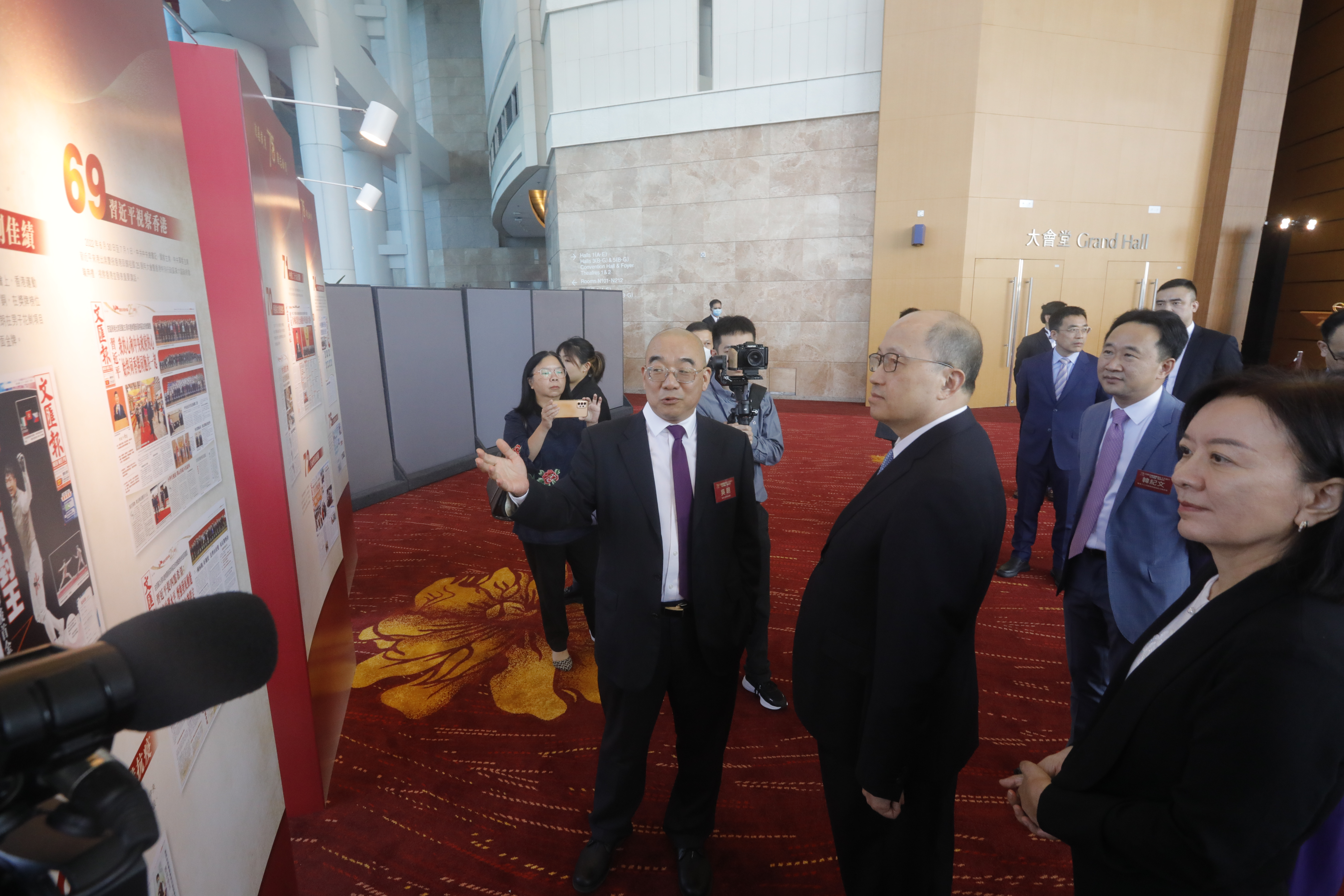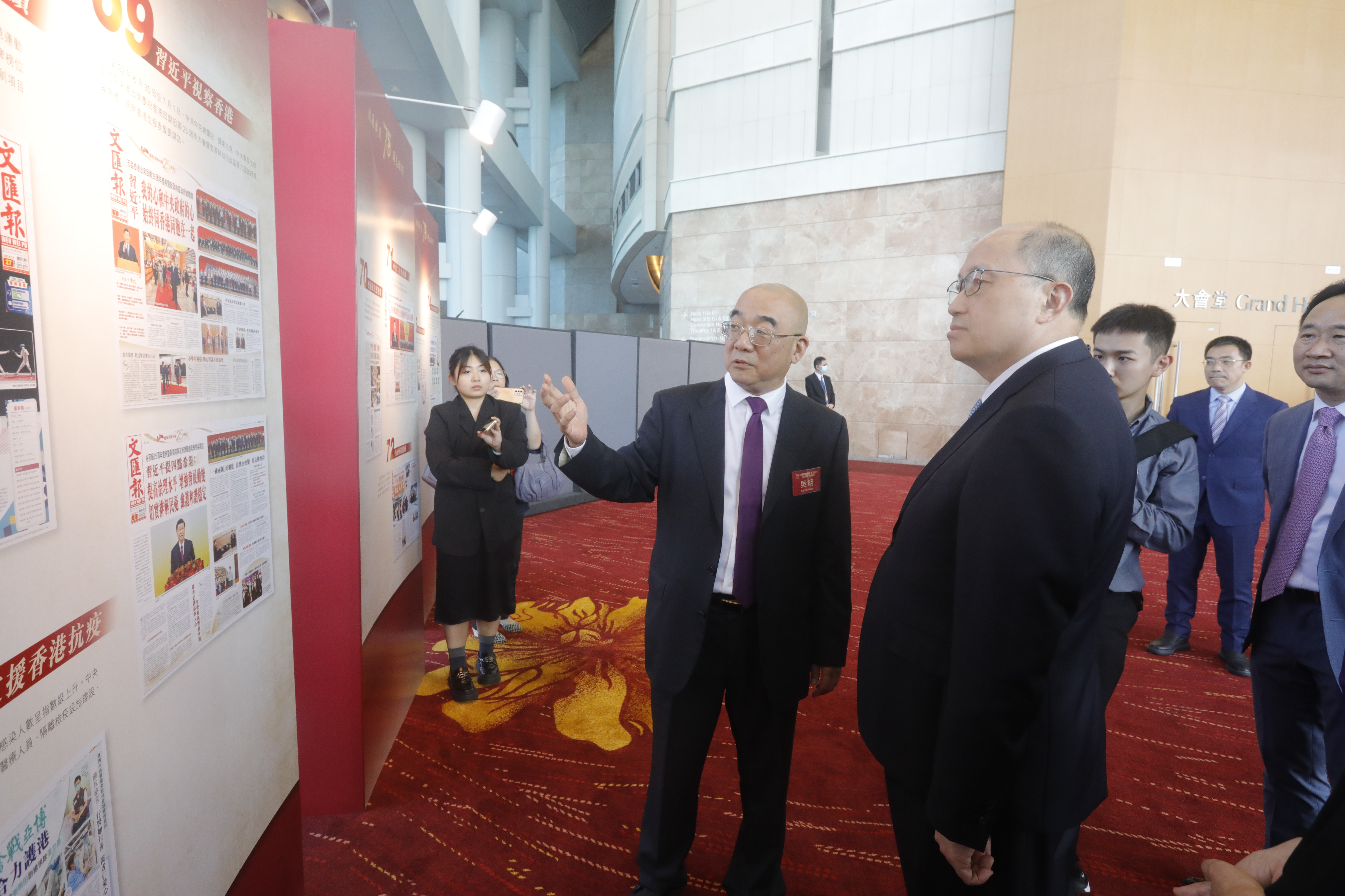 活動正式開始前,全國政協委員、香港大公文匯傳媒集團董事長、總編輯兼香港文匯報社社長、大公報社社長李大宏,香港文匯報總編輯吳明,陪同李家超、鄭雁雄、盧新寧等參觀了香港文匯報75周年展覽。