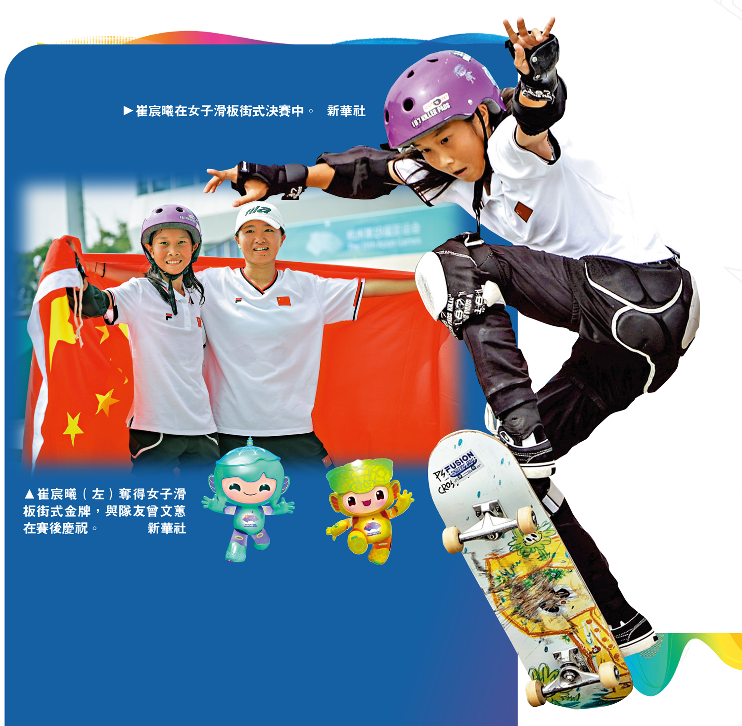 小小年紀便成為亞運會冠軍,崔宸曦非常開心。她說:「比賽前,家人和教練都說盡力就好,但我特別想拿冠軍,這也是我參加所有比賽裏最自信的一場。我想,可能是因為主場,有很多國內觀眾和朋友的支持,感覺像是回家一樣,比賽感覺很輕鬆。」「這只是一個起點,我會繼續努力,爭取在巴黎奧運會上取得出色的成績。」對於她而言,滑板代表着快樂、刺激和挑戰:「我非常喜歡滑板,即使不訓練時,也總是迫不及待地想要滑。」話語中帶着期待和興奮。