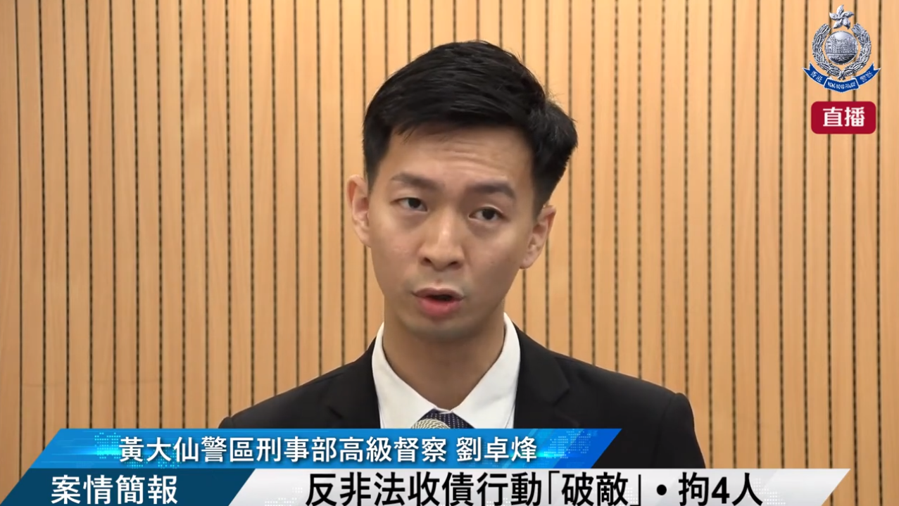大公文匯全媒體報道,警方於9月25至27日進行「破敵」行動,以情報主導方式,打擊非法收債活動。行動中,警方成功偵破19宗與非法收債有關的案件,包括「無牌放債」、「以過高利率放債」、「洗黑錢」、「刑事恐嚇」及「刑事毀壞」,並拘捕4名高利貸集團的骨幹成員(3男1女,年齡介乎26至45歲),及檢獲收債紙和紅油等證物。警方黃大仙警區刑事部高級督察劉卓烽及督察蔡鎮灝今日(28日)對案情作簡報。