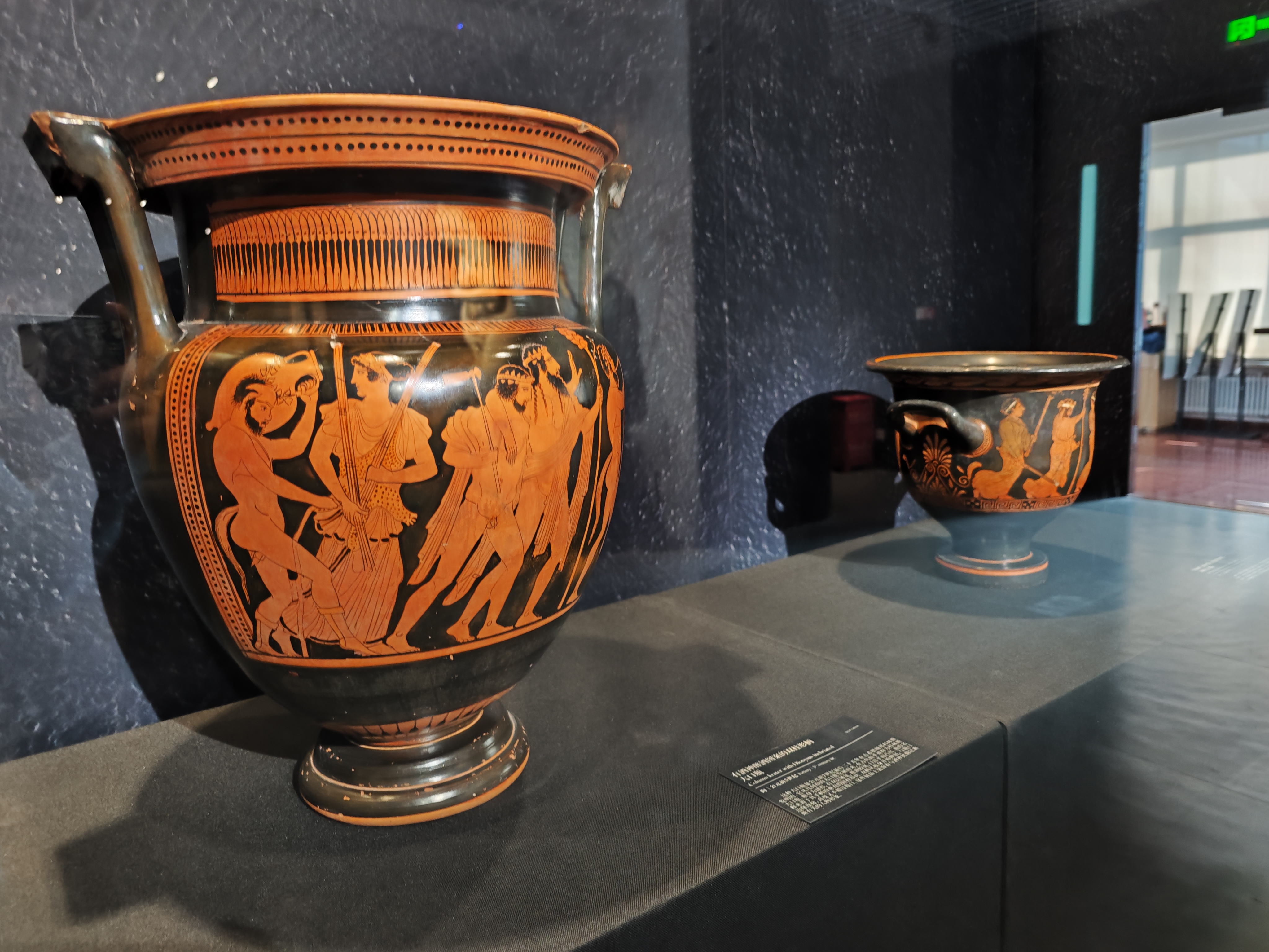 《伽倪墨得斯與鷹》是年輕的特洛伊王子伽倪墨得斯的大理石雕塑,他被荷馬描述為那個時代最英俊的凡人,本展品中,年輕的伽倪墨得斯戴着一頂古希臘時期的弗裏吉亞帽,低垂的右臂抱着牧羊人的手杖,左臂則環抱着老鷹。旁邊的狗蹲坐着,抬頭望向伽倪墨得斯;《有帕裏斯、海倫及阿佛洛狄忒的浮雕》雕工精細,刻畫了帕裏斯評判的場景,在古希臘神話中,這正是特洛伊戰爭的導火索;《有酒神醉酒圖案的雙柱形柄大口瓶》上裝飾着與酒神狄俄尼索斯有關的人物形象等。