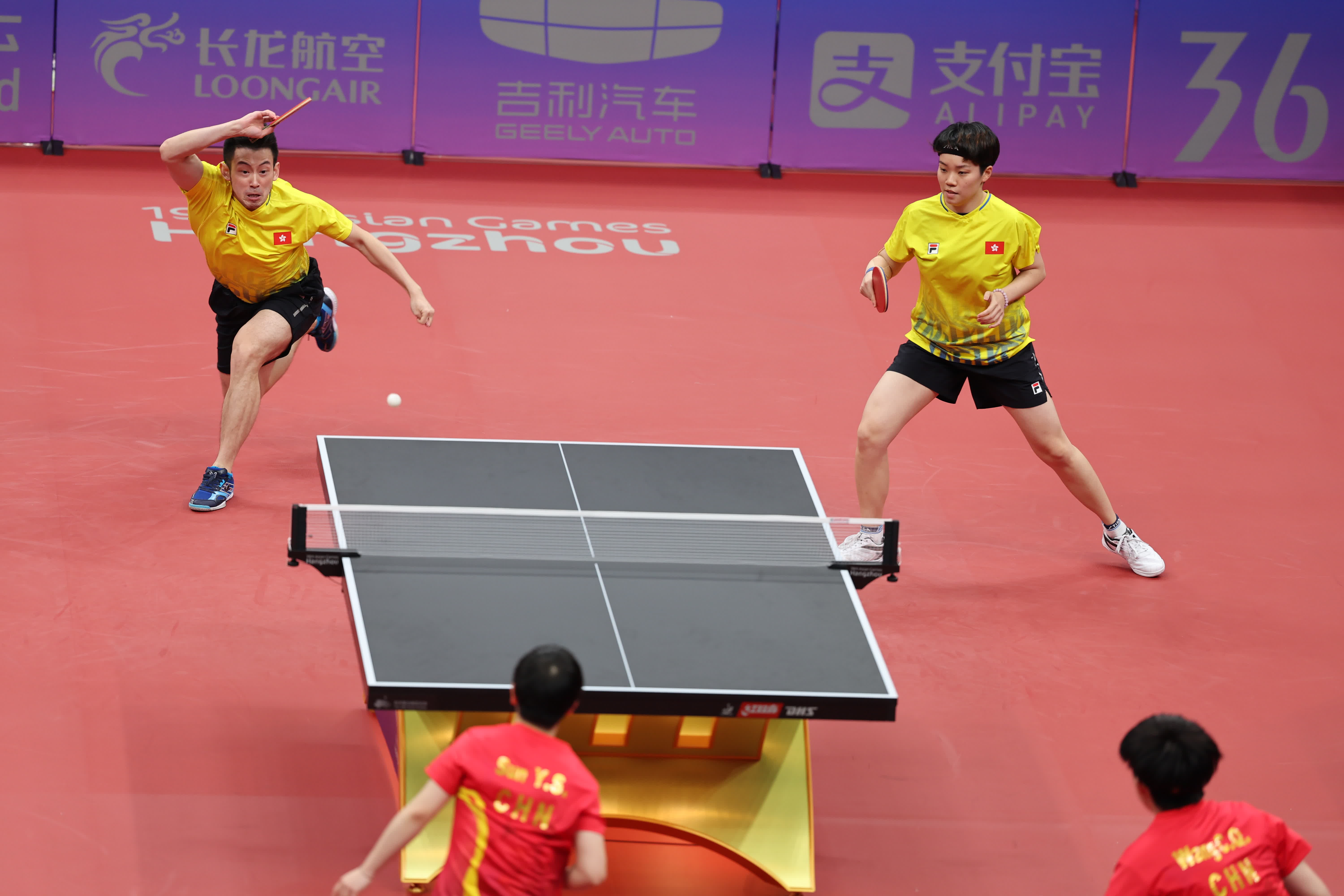 (大公文匯網記者 茅建興)今日(9月28日)晚,在杭州亞運會的拱墅運河體育公園體育館,乒乓球混雙8進4比賽全場關注,中國香港隊黃鎮廷和杜凱琹最終以0:3負於國家隊王楚欽和孫穎莎,雙方第二局、第三局比分曾一度緊咬,還形成相持局面。