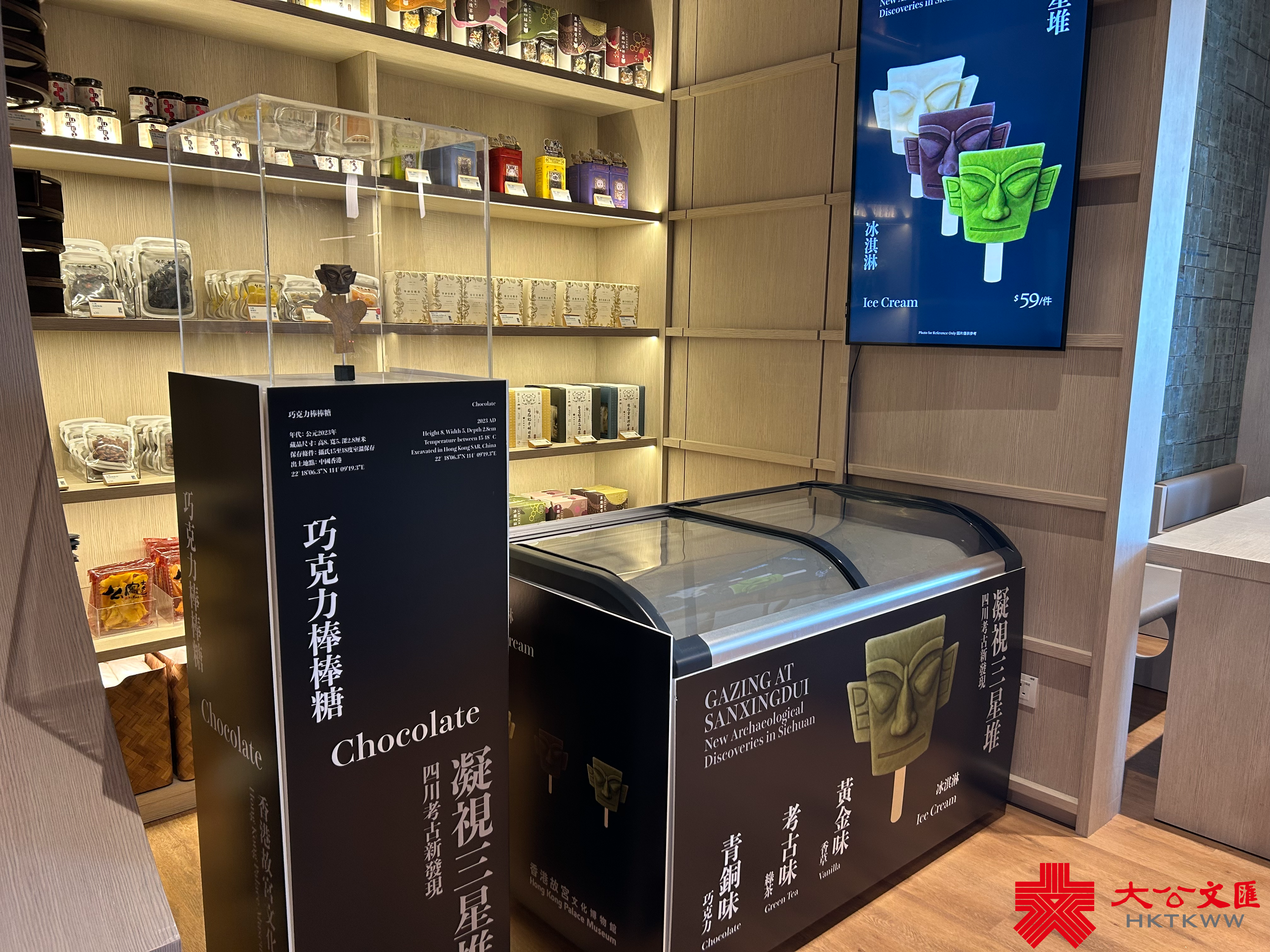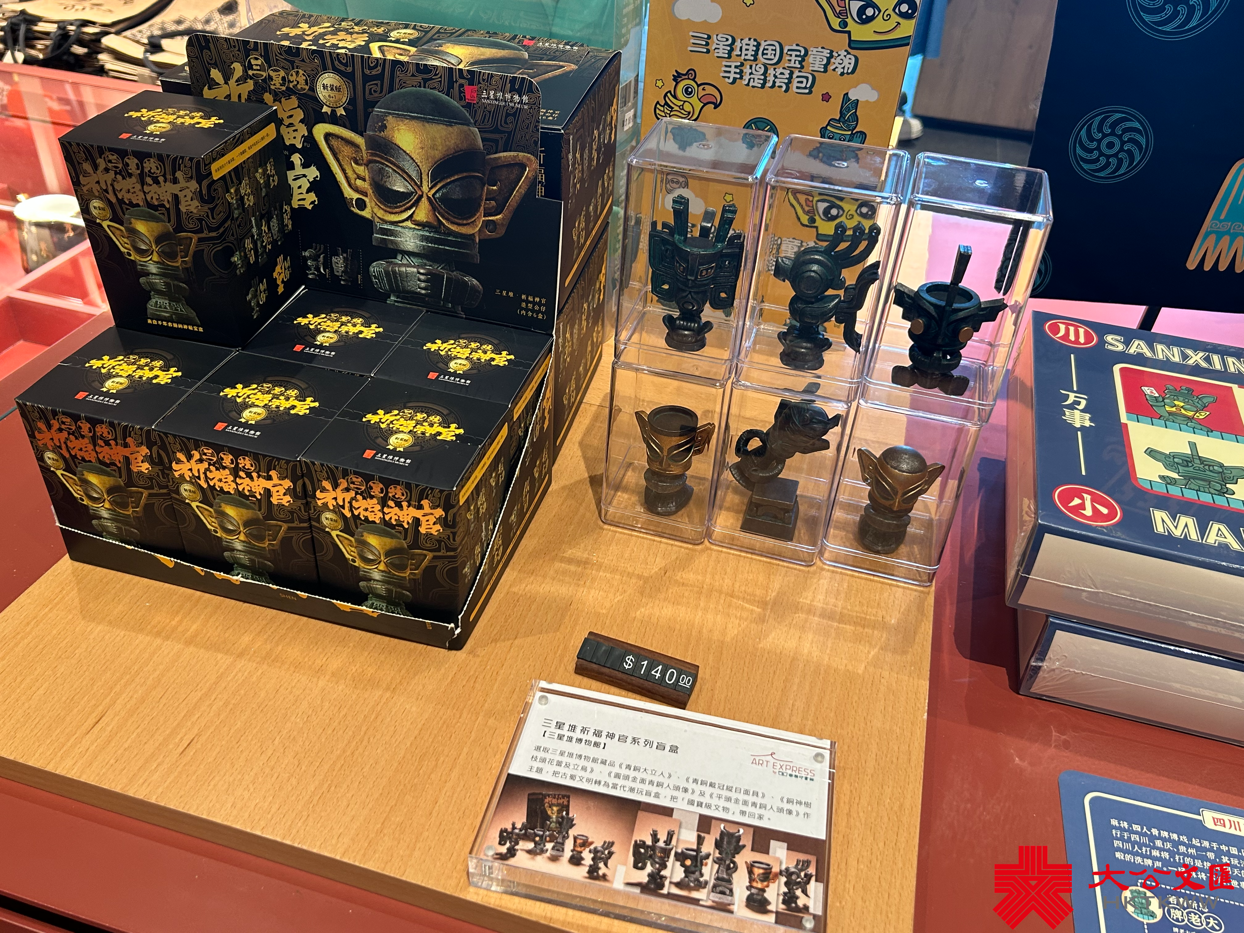 為配合展覽,香港故宮文化博物館分階段推出超過100款三星堆主題文創產品,包括各款以青銅神樹及青銅面具為靈感的鑰匙扣、書籤、盲盒玩具等,以及不同口味的戴金面罩人頭造型冰棒及三星堆大面具造型朱古力,這些文創產品在博物館地面層禮品店售出。