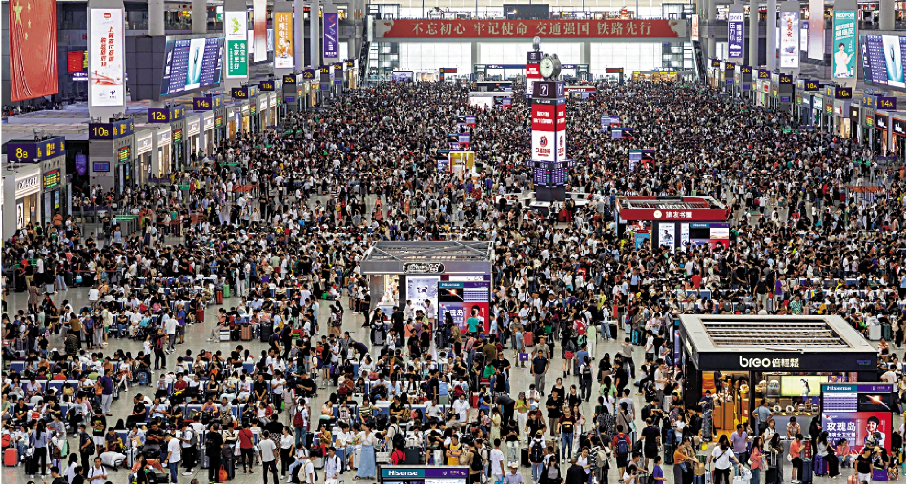 廣鐵29日透露,黃金周8天,探親流、旅遊流交織,客流呈現強勁增長態勢,廣州南站從9月28日0時起共加開「夜間高鐵」425列,深圳北站也從27日起連續四天夜間開行「夜間高鐵」。而29日廣鐵客流主要集中在京廣、南廣、貴廣、廣深港等高鐵線路,客流火爆程度已超往年,連通香港高鐵的廣州南站、廣州東站等主要車站都迎來了超大客流,接近歷史峰值。