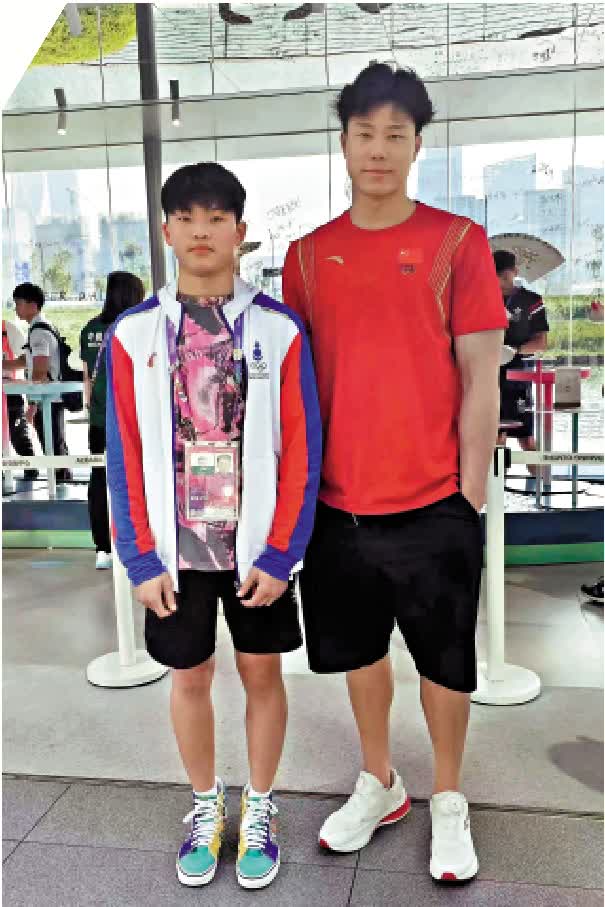 「在這屆亞運會裏,我報名了三個比賽項目,包括男子50米仰泳、男子50米蛙泳和男女混合4×100米混合泳接力,雖然都沒有進入決賽,但我對自己的表現還是挺滿意的,尤其是今天上午的男子50米蛙泳比賽,在父母的助威聲中,我游出了34.23的個人最好成績,拿下了我們組的預賽第一。」Amirlangui Ariunsukh告訴記者,這是他第一次代表國家參加亞洲運動會,也是第一次來到中國,對一切都感到新奇而有趣。
