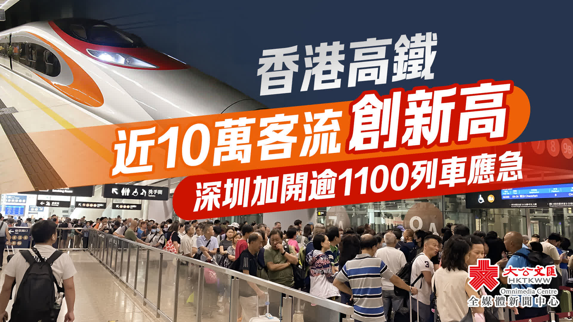 大公文匯全媒體報道,今年中秋國慶節連假長達8天,內地交通迎來極大客流挑戰,為紓緩深圳往返香港客流壓力,深圳鐵路決定在黃金周期間,加開列車1100餘列往返深港,以回應運輸需求。