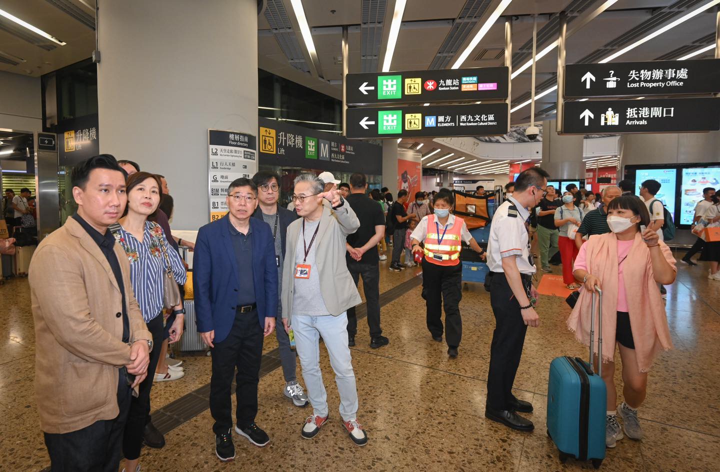 運輸及物流局局長林世雄今早(9月30日)到高鐵香港西九龍站和鄰近的屯馬綫港鐵站視察,了解訪港旅客使用管制站附近公共交通服務的情況。林世雄表示,香港是內地旅客國慶黃金周出遊的首選地之一,政府各個相關部門一直為迎接訪港旅客進行緊密協調和溝通,務求令旅客在香港有更好的旅遊體驗。