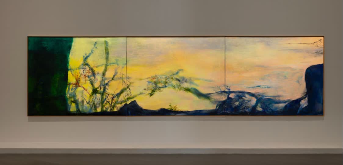 本次展覽展出的《向我的朋友亨利·米修致敬,1999年4月—2000年8月——三聯畫》是趙無極1999年至2000年的巨幅作品。中國美術學院美術館館長、本次展覽策展人餘旭鴻介紹,當時正值趙無極的好友米修誕辰一百周年。米修是法國著名詩人,熱愛中國文化,趙無極借米修向中國文化傳統致敬。趙無極當時寫下了這樣一段頗具洞見的話:「中華文明博大精深,為人們提供了寬廣的道路以及各種創作的契機。如今把握這些契機的時候到了,巨變已不可逆轉。」