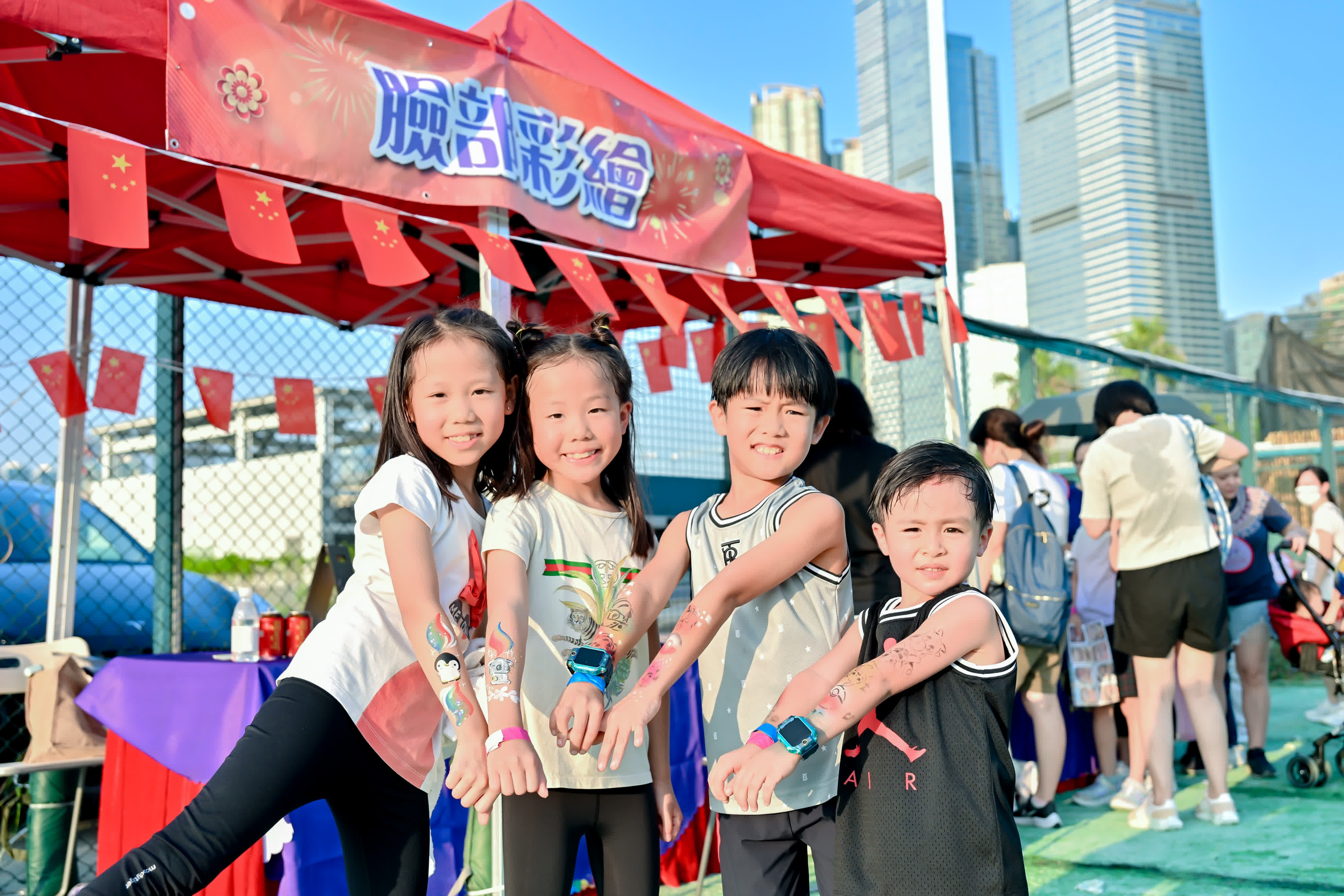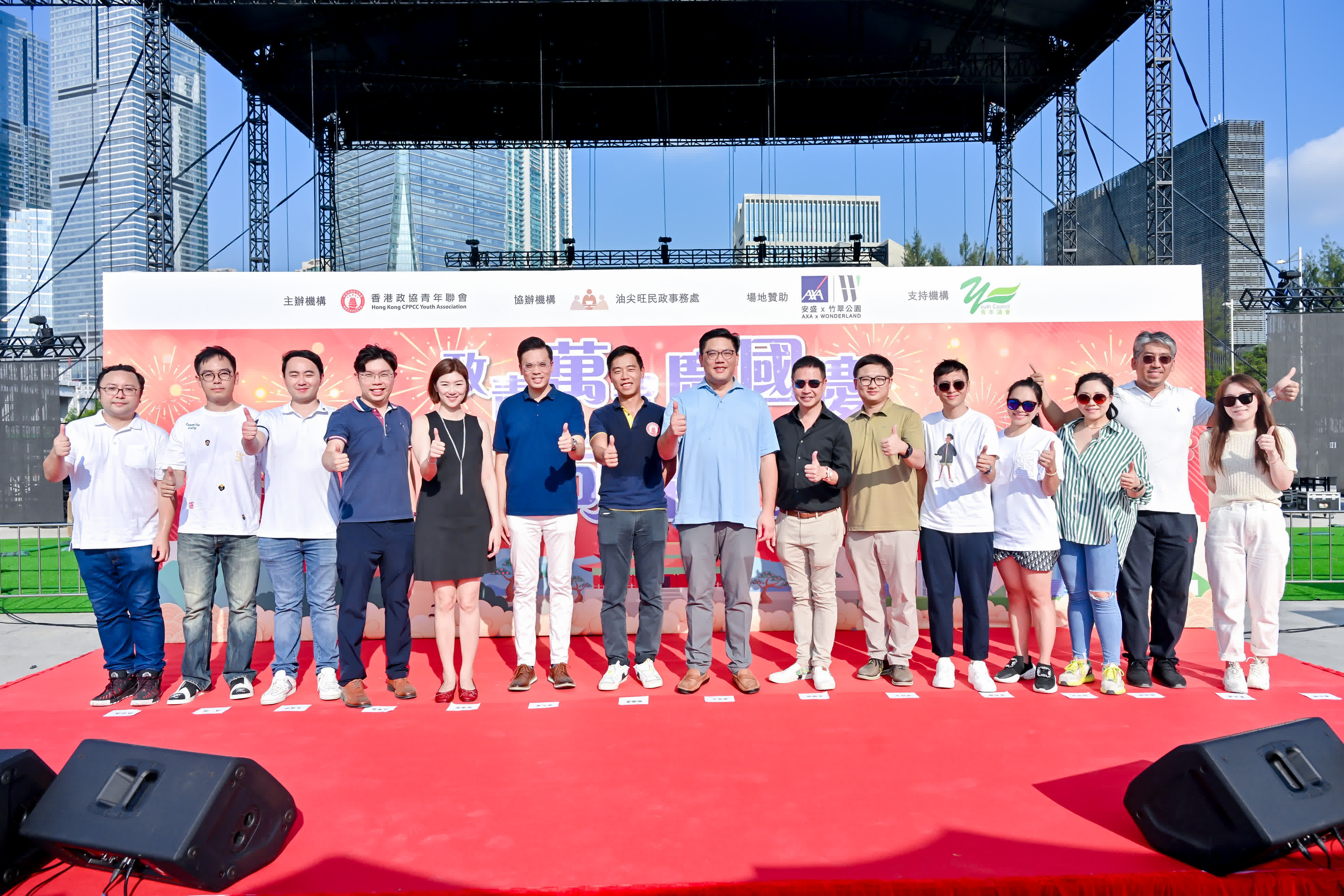 大公文匯網報道,為慶祝中華人民共和國成立74周年,由香港政協青年聯會主辦、油尖旺民政事務處協辦的「政青萬眾慶國慶同樂日」大型活動,於9月30日及10月1日一連兩日在西九文化區的竹翠公園盛大舉行,所有市民免費入場,讓一家大小共享歡樂祥和的中秋節與國慶日的雙重節日氣氛。現場設有各種有趣的遊樂設施,包括充氣城堡、猜燈謎有奬遊戲、人臉彩繪等。