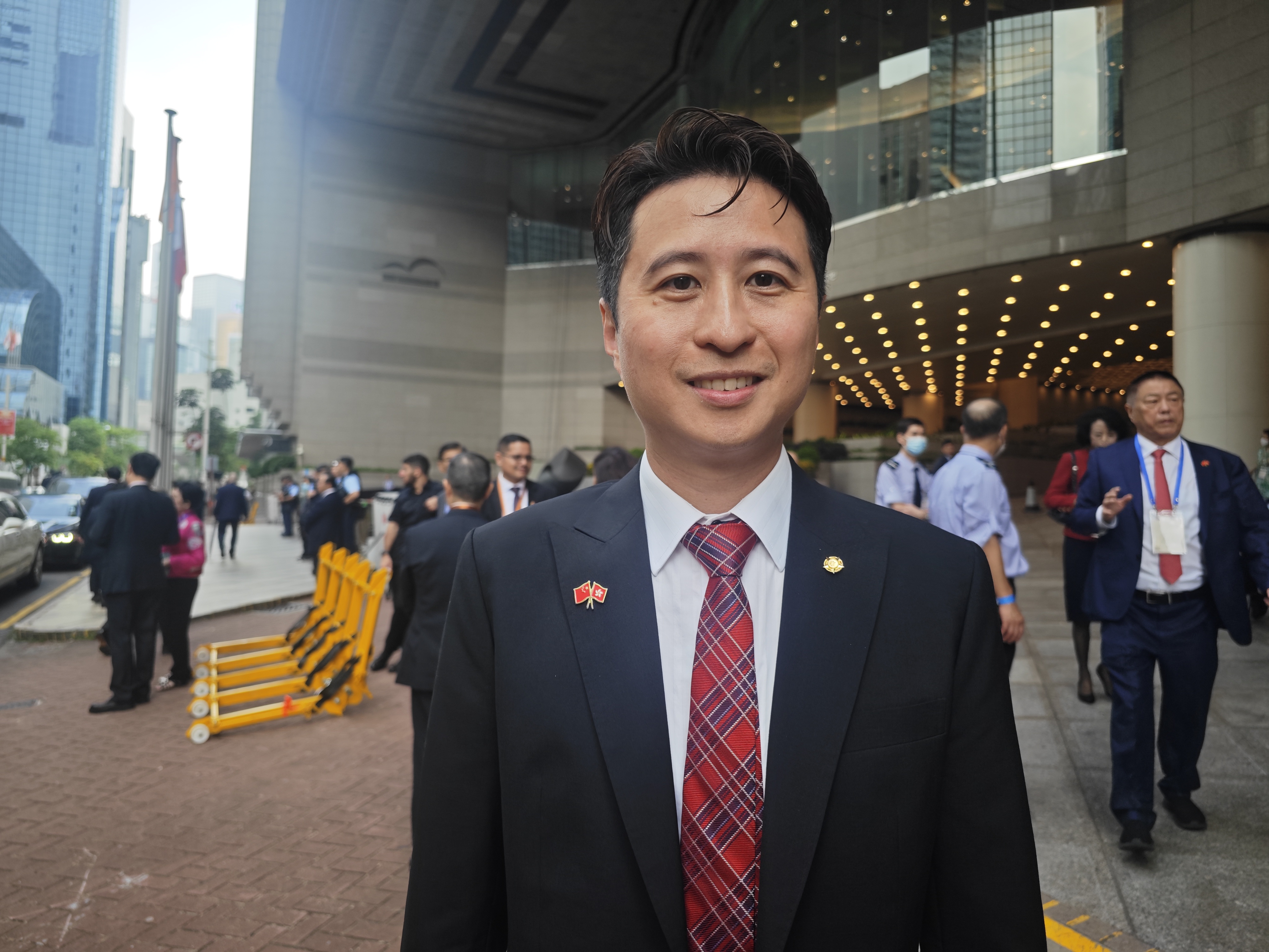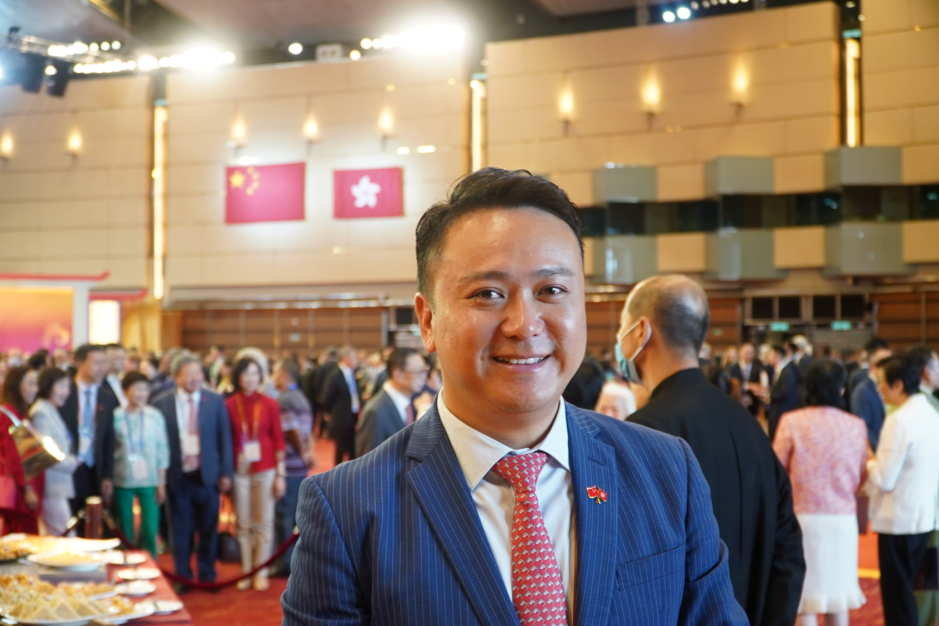 立法會議員陳沛良提到,很榮幸獲邀出席升旗儀式和國慶酒會,來自保險界的他會繼續履行職責,推動保險業發展,務求將香港打造成環球風險管理中心,當中包括推動大灣區保險互聯互通,落實「港車北上」「等效先認」政策,鼓勵中資保險公司積極參與「一帶一路」海外項目等等。