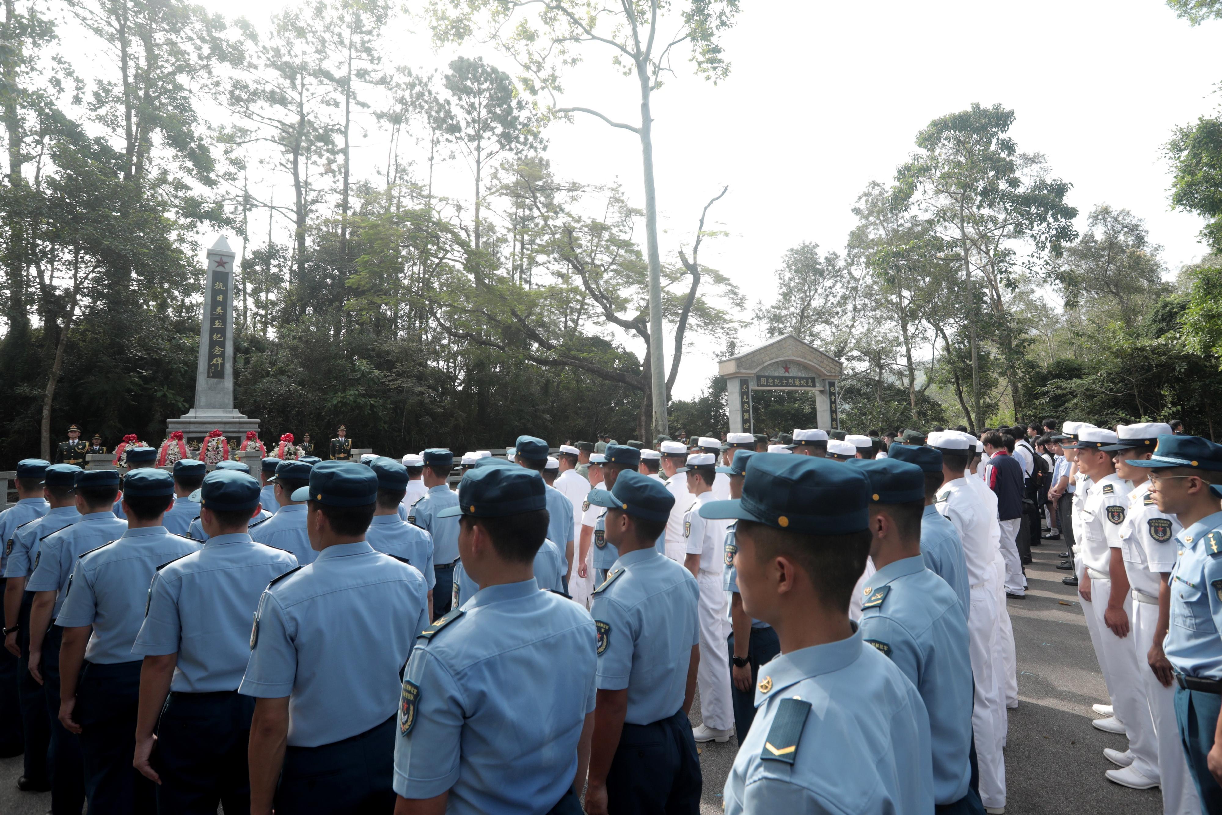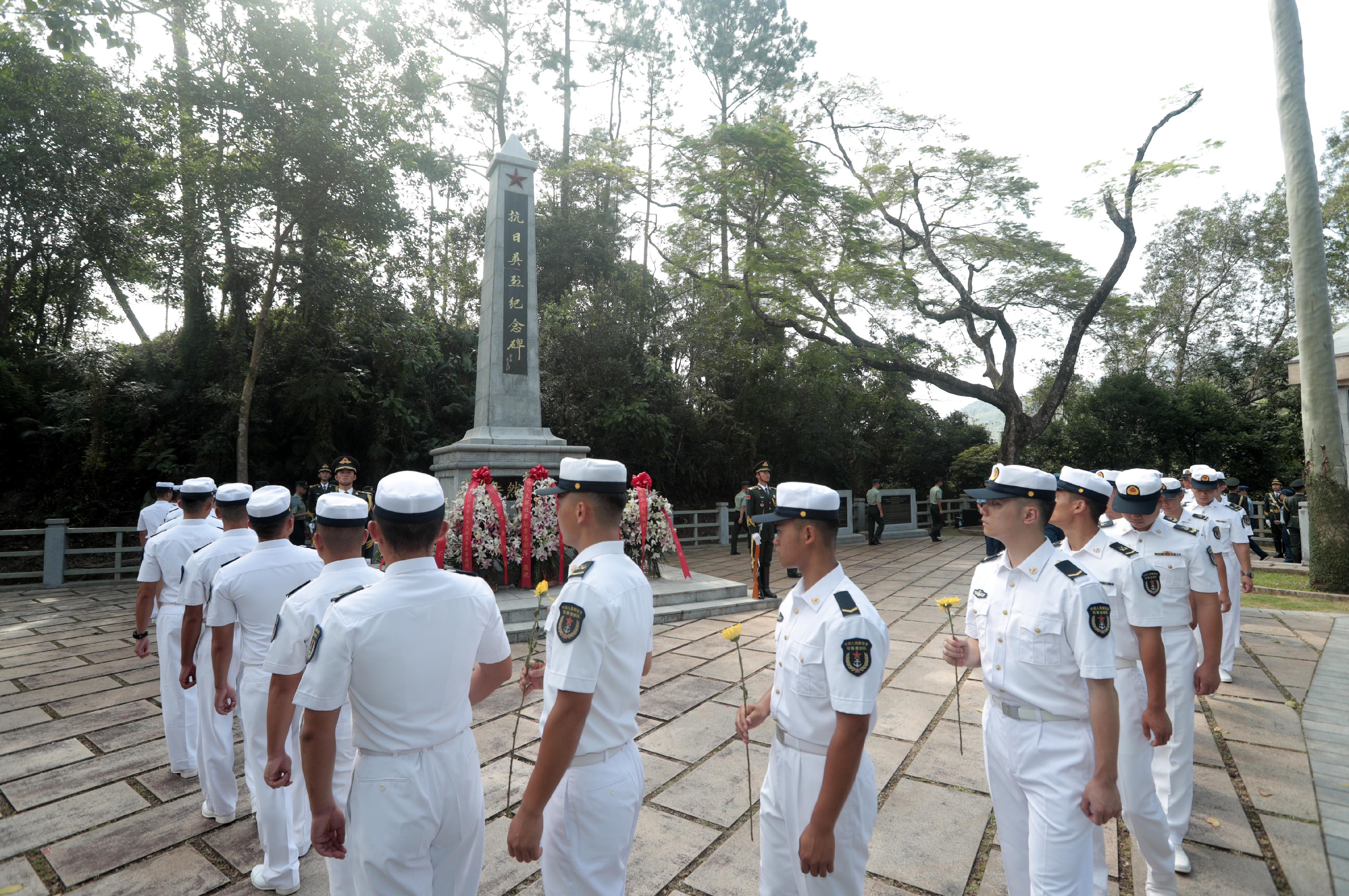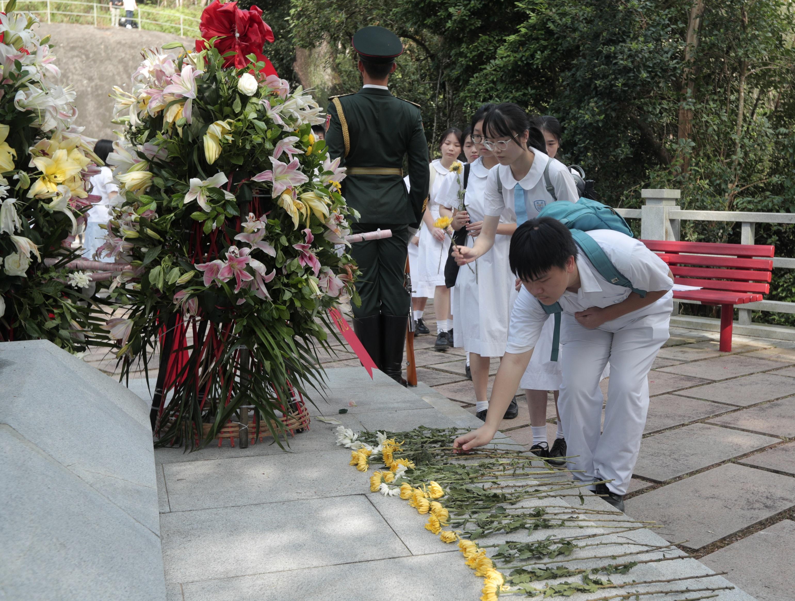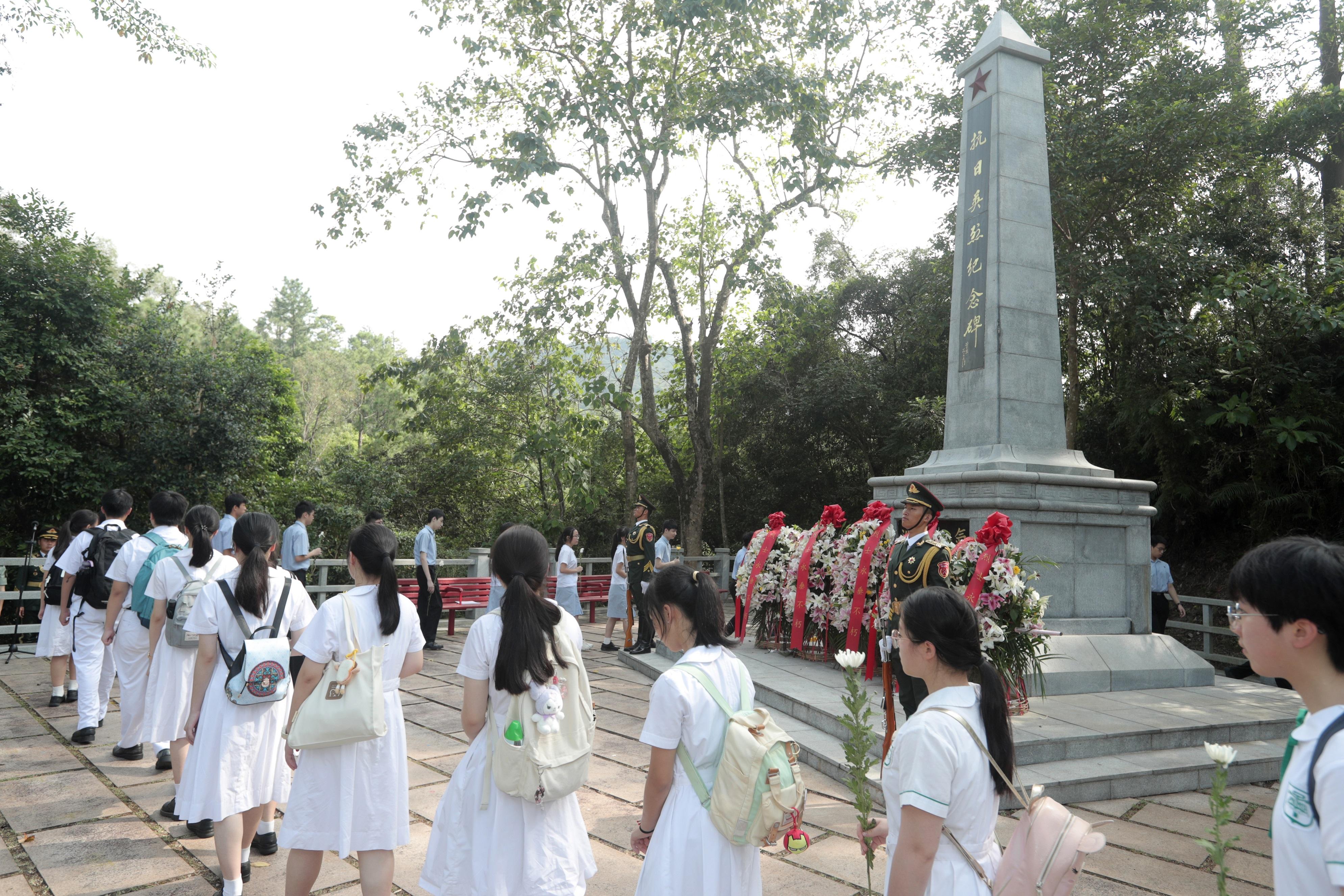 大公文匯全媒體報道,中國人民解放軍駐香港部隊官兵代表和香港中小學師生代表昨日(9月30日)前往位於新界的烏蛟騰烈士紀念園,瞻仰抗日英烈紀念碑,並向在抗日戰爭時期英勇犧牲的革命先烈敬獻花籃,表達緬懷之情。