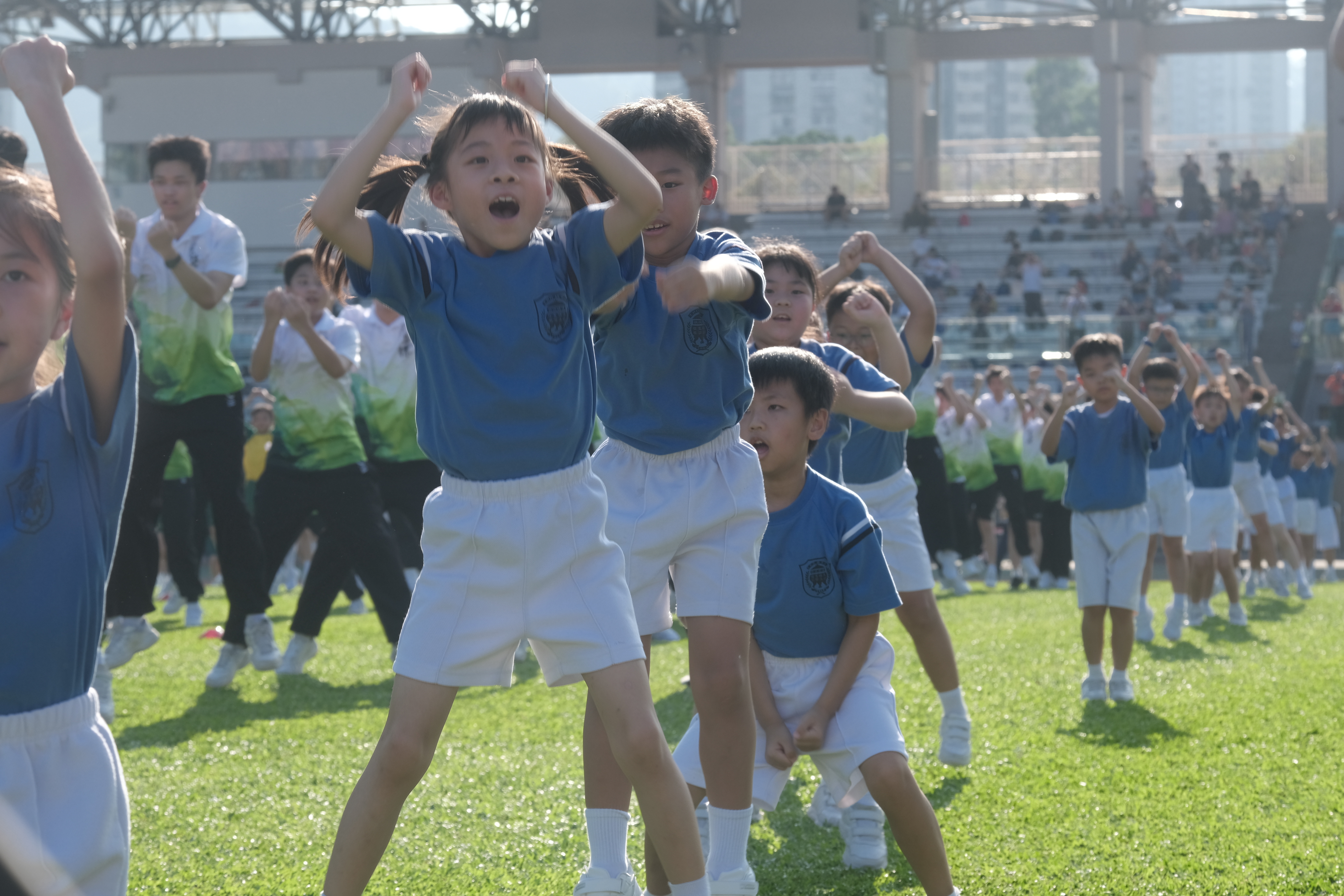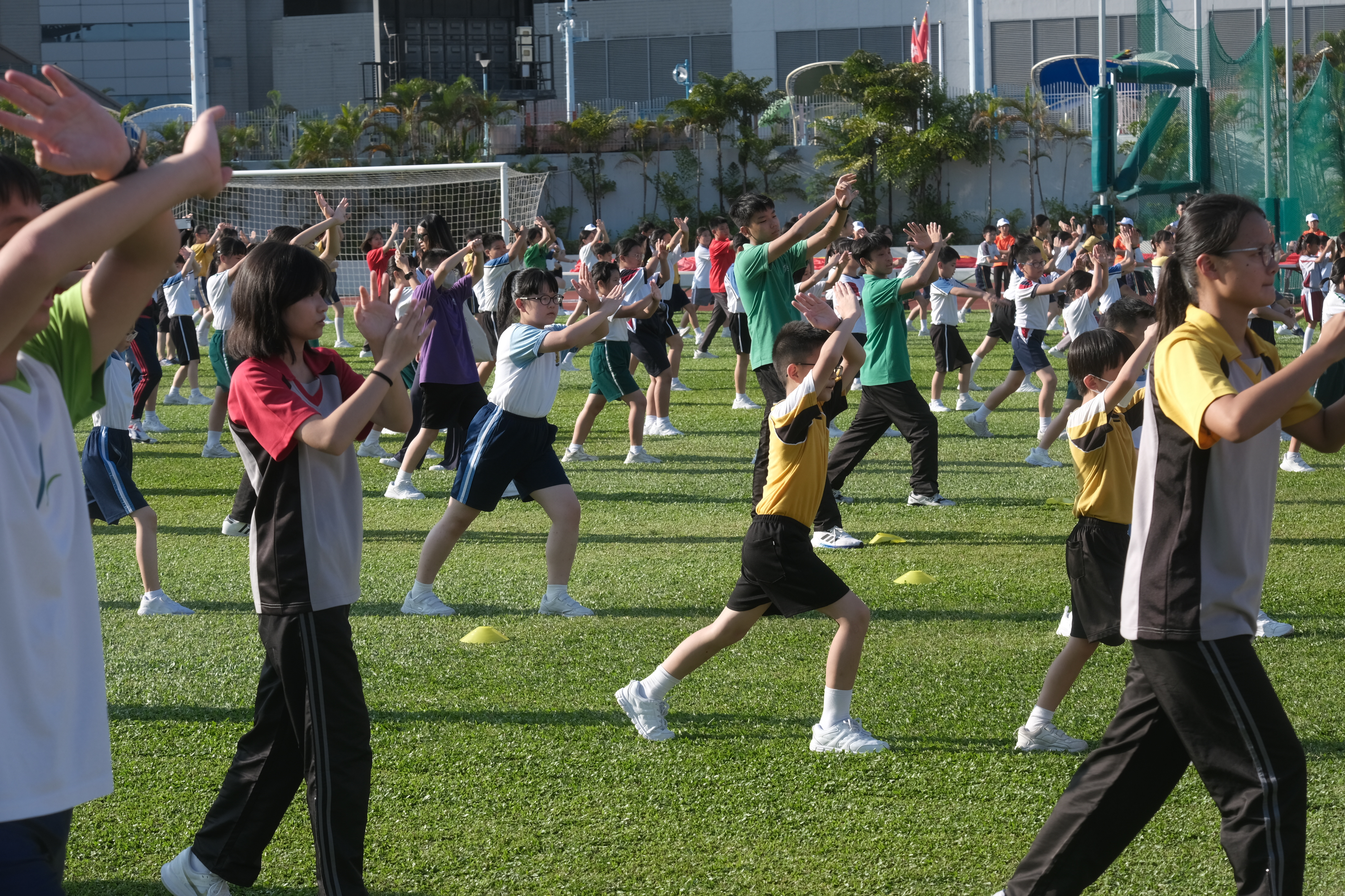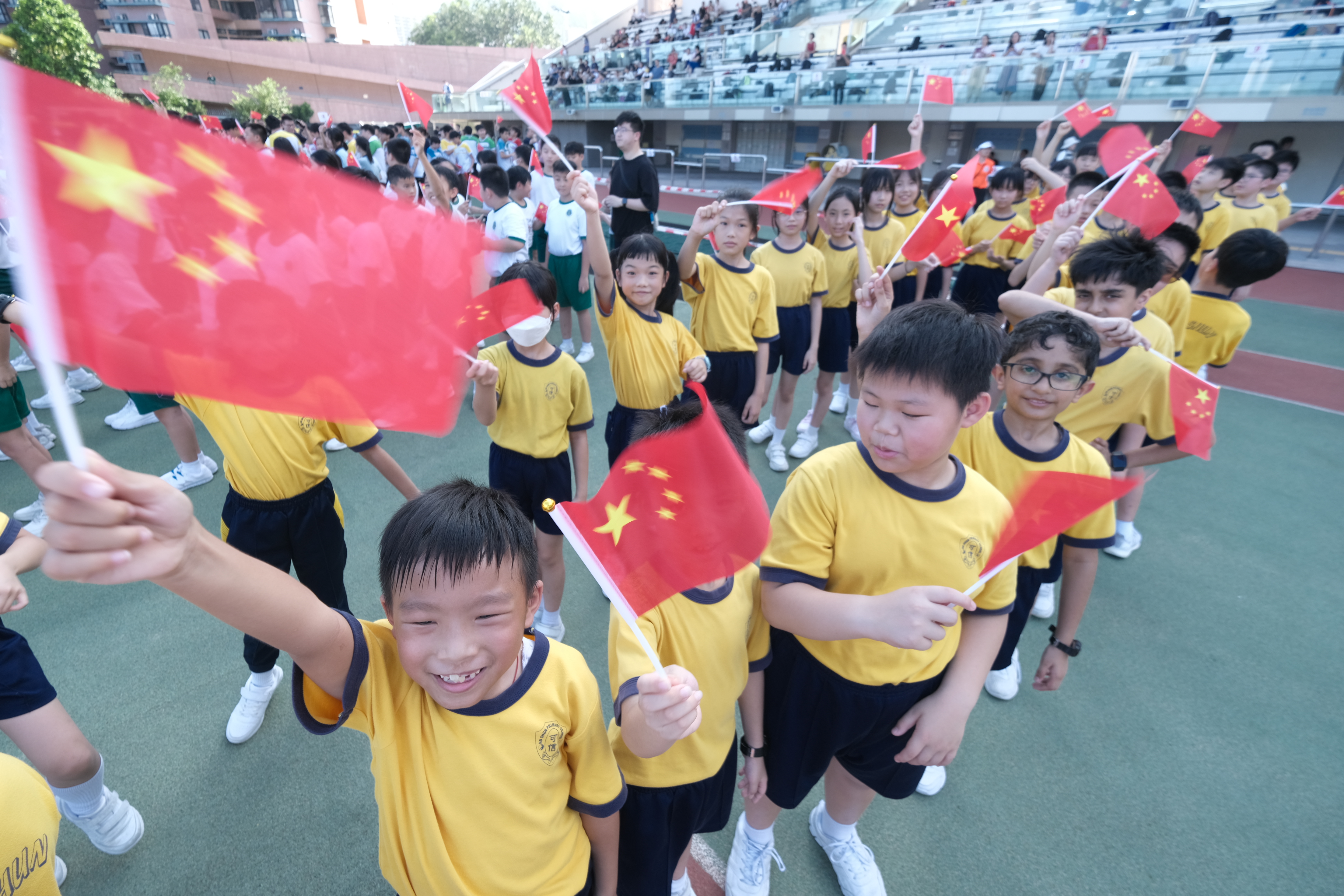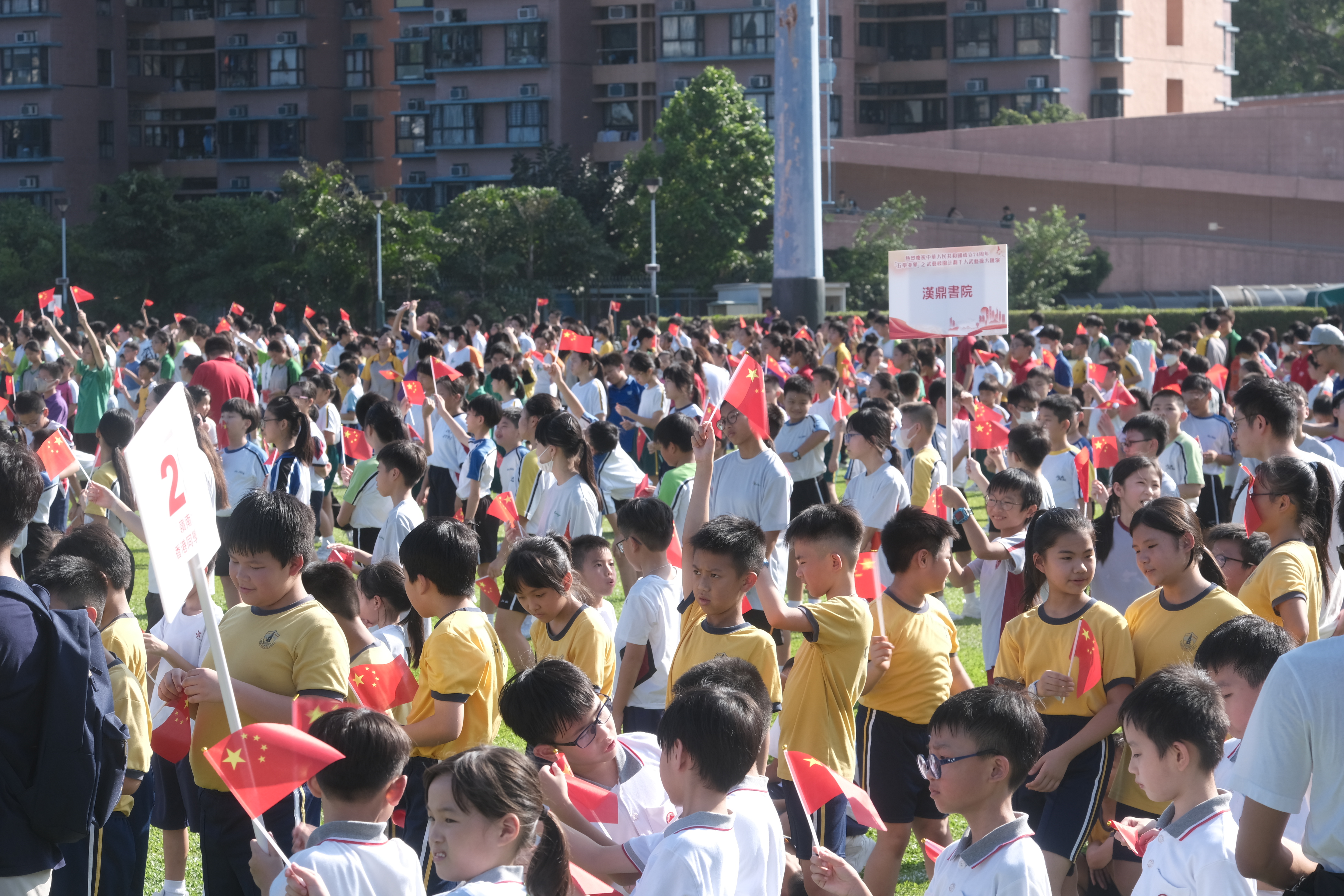 大公文匯全媒體報道,為慶祝中華人民共和國成立74周年,馮燊均國學基金會特舉辦國慶香港中小學生千人武藝操大匯演。