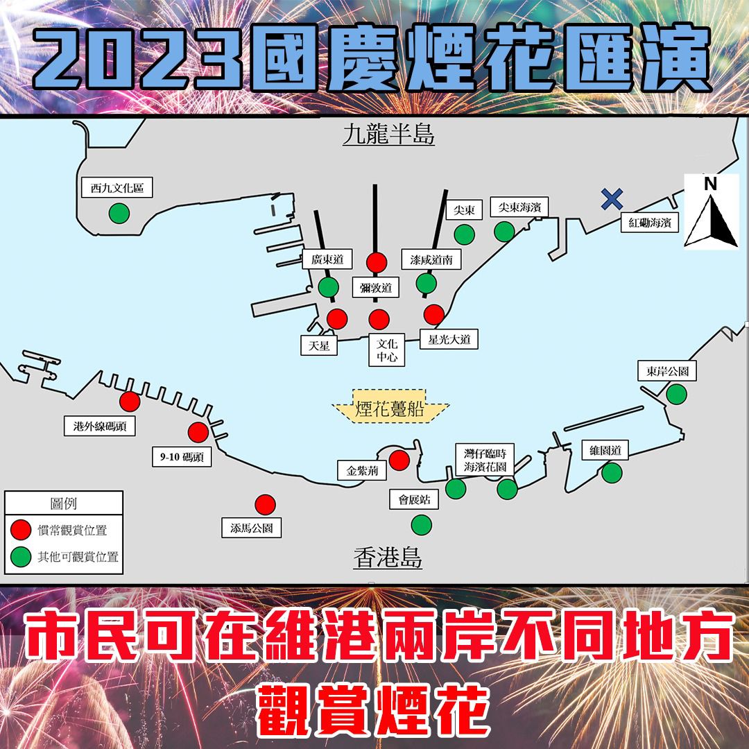 警方早前列出很多新地標適合觀看煙花,包括西九文化區、灣仔海濱、東岸公園等。