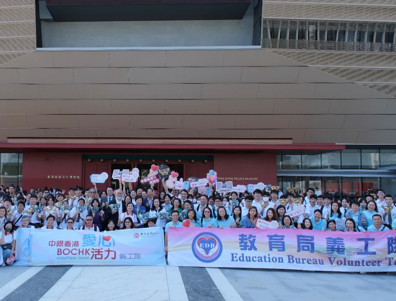 為提升青少年對中華文化的興趣及了解,10月1日國慶節當天,中銀香港特意安排了學生專場,資助近400名來自不同學校的學生參觀,並邀請了教育局局長蔡若蓮、教育局副秘書長羅嘉穎、立法會議員及中銀香港總法律顧問簡慧敏,以及43位來自教育局及中銀香港的義工陪同及協助學生。在博物館首席研究員焦天龍及其他專業導賞員帶領下,學生分別參觀了展廳8「凝視三星堆 四川考古新發現」、展廳3「凝土為器 故宮博物院珍藏陶瓷」及展廳2「紫禁一日 清代宮廷生活」,獲得獨特難忘的體驗。
