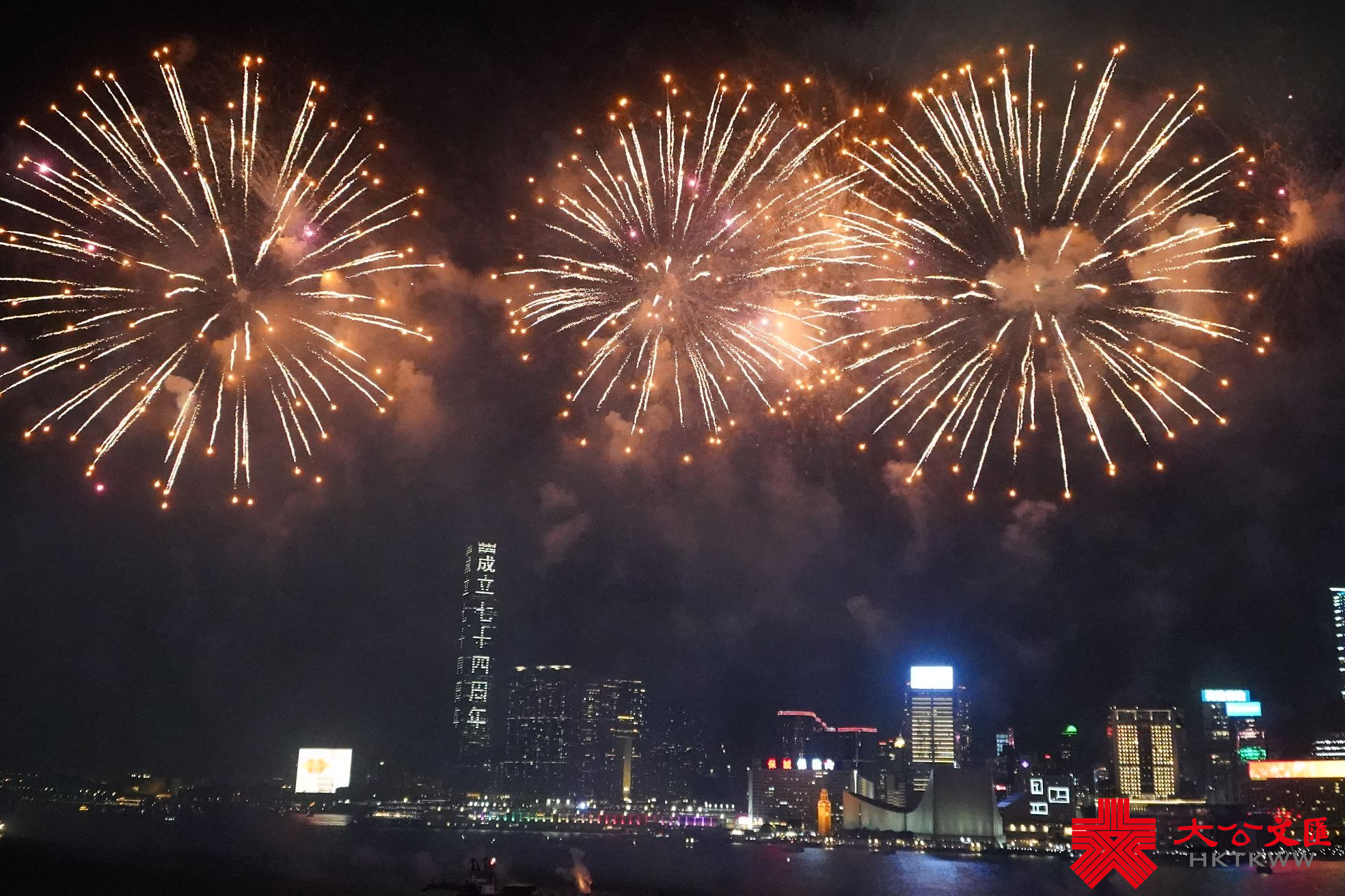 大公文匯全媒體報道,為慶祝中華人民共和國成立74周年,維港上空今晚(10月1日)9時舉行華麗璀璨的國慶煙花匯演,大批市民到維港兩岸觀賞煙花。煙花匯演主題為「富興百業賀國慶,盈聚慧城耀香江」,歷時約23分鐘,分為八幕,由3艘躉船及6艘浮船發放31888枚禮花彈。大家今晚睇咗煙花未?錯過咗都唔緊要,快啲跟隨大公文匯全媒體一齊重溫煙花盛景喇!