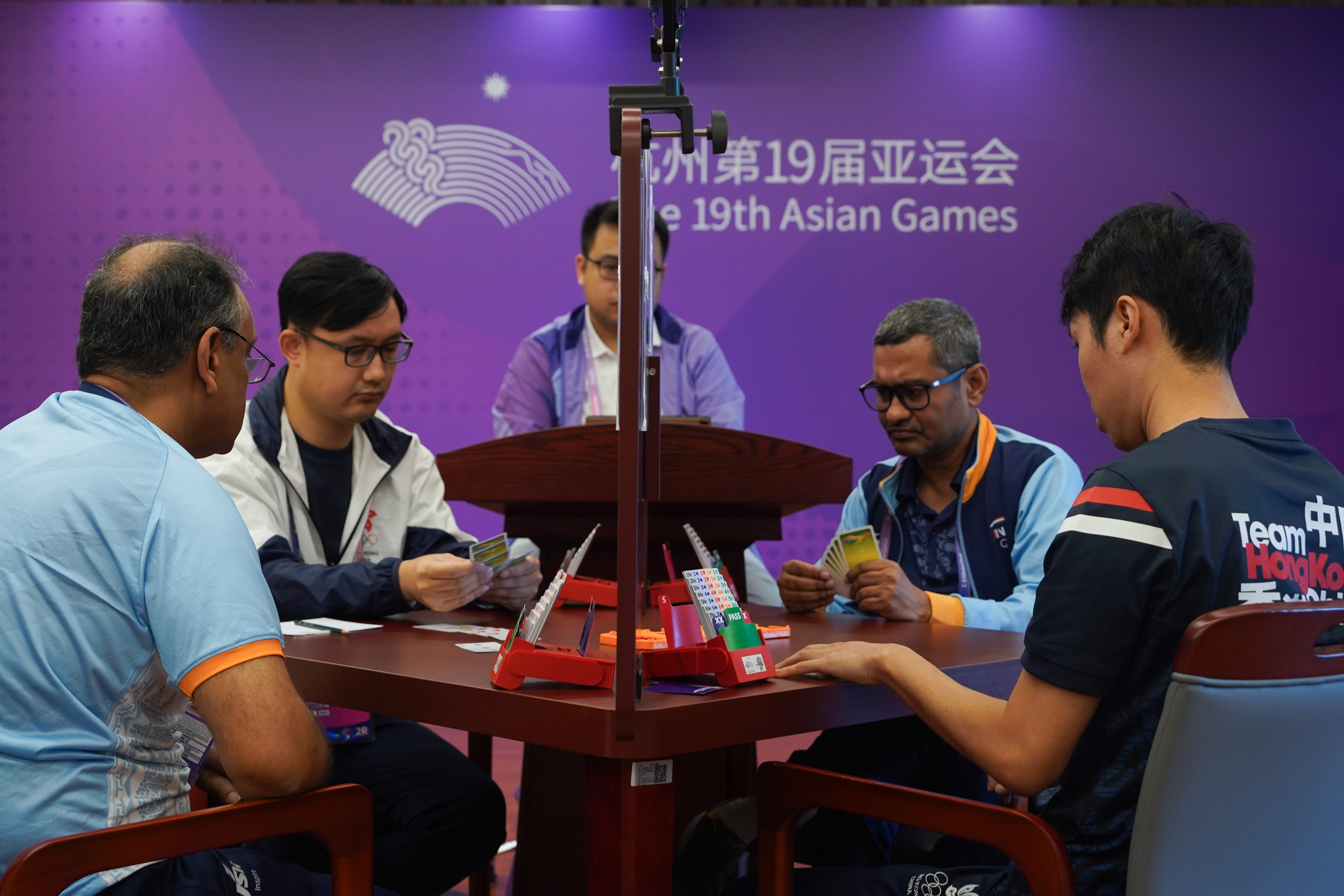 大公文匯全媒體報道,杭州亞運會橋牌項目男團、女團及混合團體決賽今日(5日)起一連兩日在杭州棋院舉行,香港男隊將在今明兩日共6節賽事中,與印度隊爭奪男團項目冠軍。5年前有份取得男團銀牌的黎偉傑、麥國輝今屆亞運會繼續在陣,與上屆為港團得超級混合團體銀牌的何凱桐、何偉霖,加上施純森、招偉立聯袂出戰。