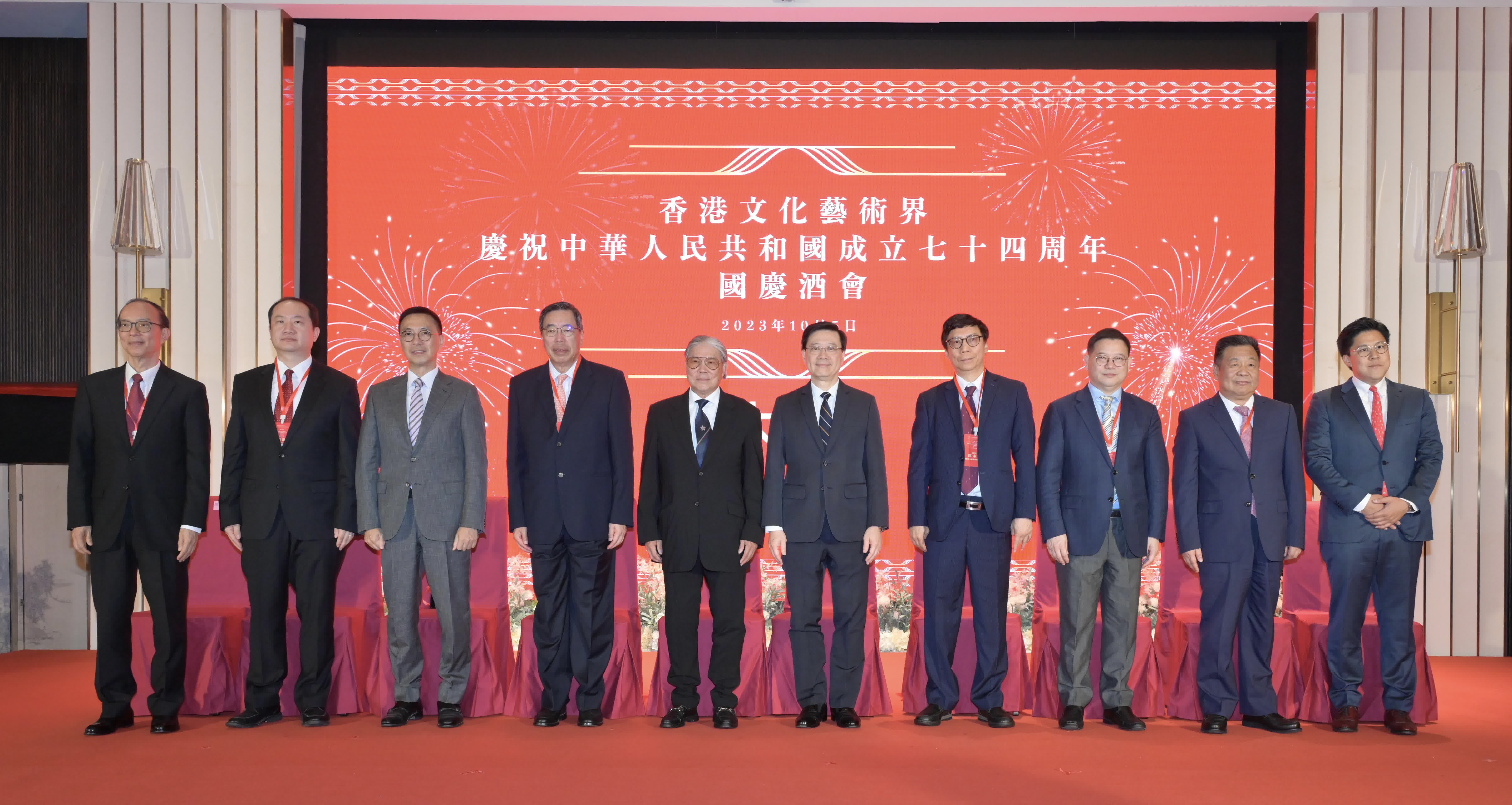 (大公報 記者 劉毅)為慶祝中華人民共和國成立74周年,香港文化藝術界今日(5日)在香港故宮文化博物館舉行國慶酒會,行政長官李家超、中央駐港機構代表,以及約450位香港文化、藝術、出版及表演界人士出席,共慶國慶,亦希望香港與內地文化藝術界、國際同行加強聯繫,共同推動香港成為中外文化藝術交流中心。