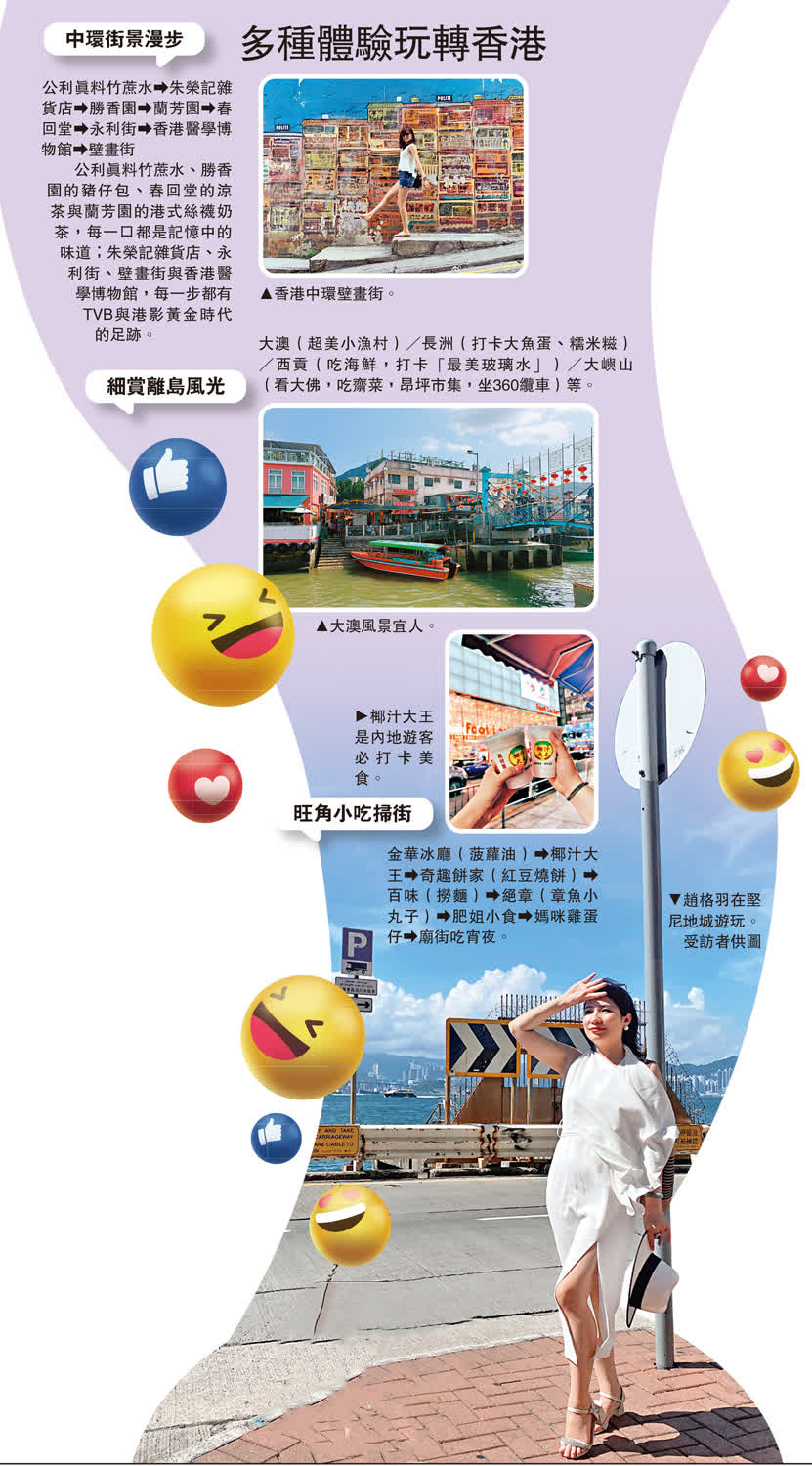 趙格羽說,乘坐地鐵到達旺角後,港片裏那種老香港的感覺撲面而來,林立的廣告牌,各樣的美食,煙火氣十足,有種重回八零年代的感覺。「我在女人街邊吃邊逛,咖喱魚丸和菠蘿油特別好吃,牛雜做得軟爛入味。那種小店特別接地氣,價格也親民。去體驗當地風味的特色小吃,可以感受最真實的香港老百姓生活。我覺得美食也是香港一個非常大的名片。」