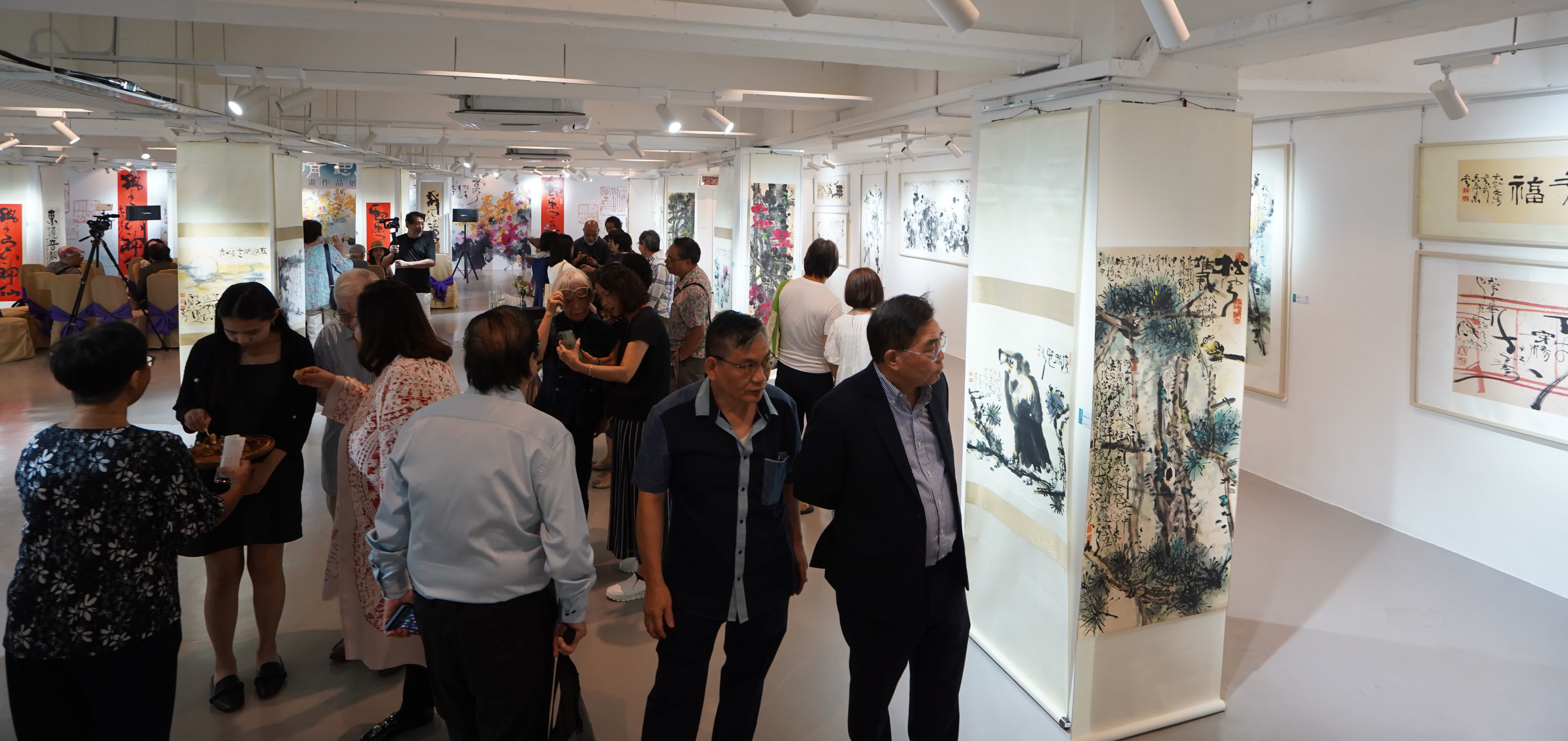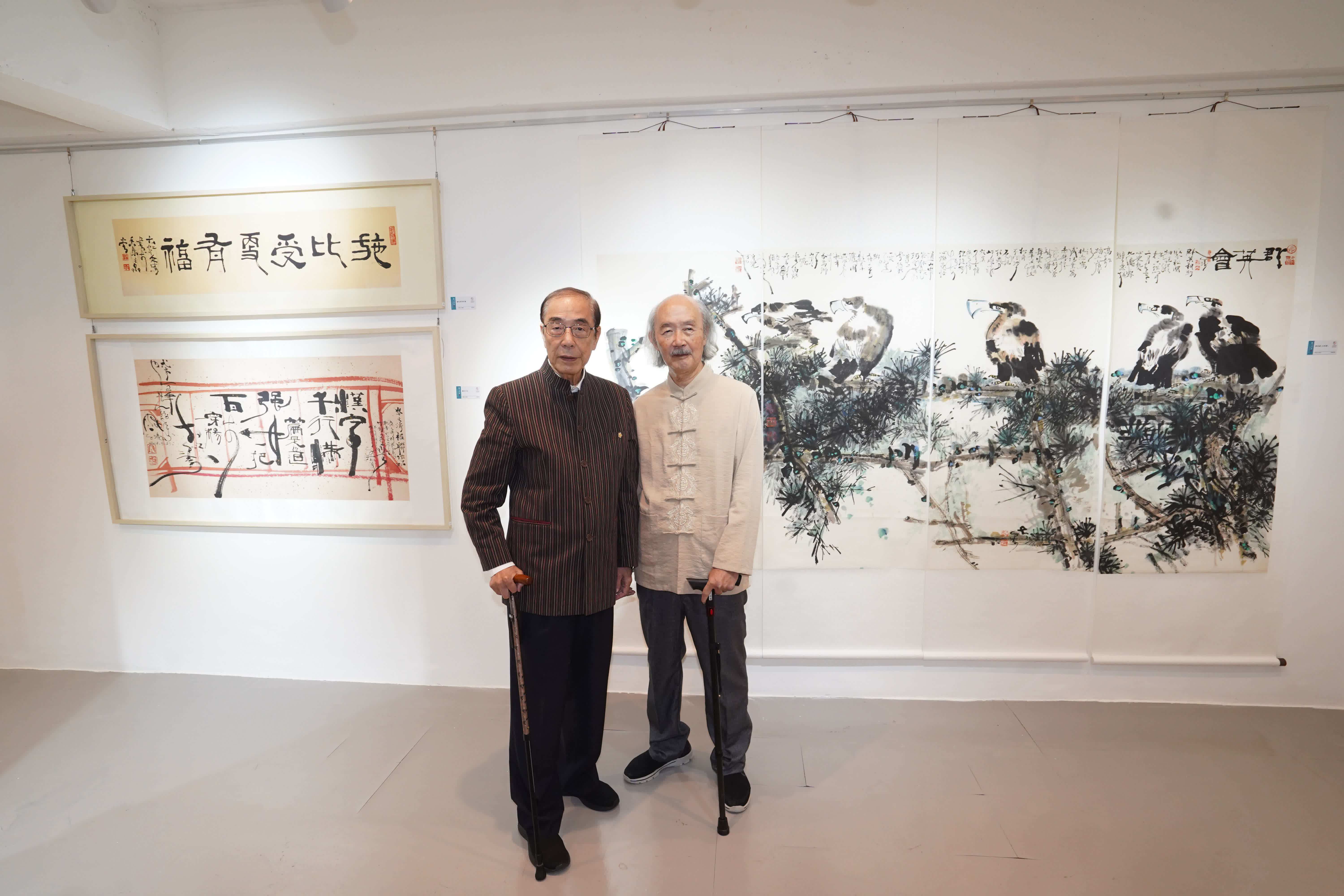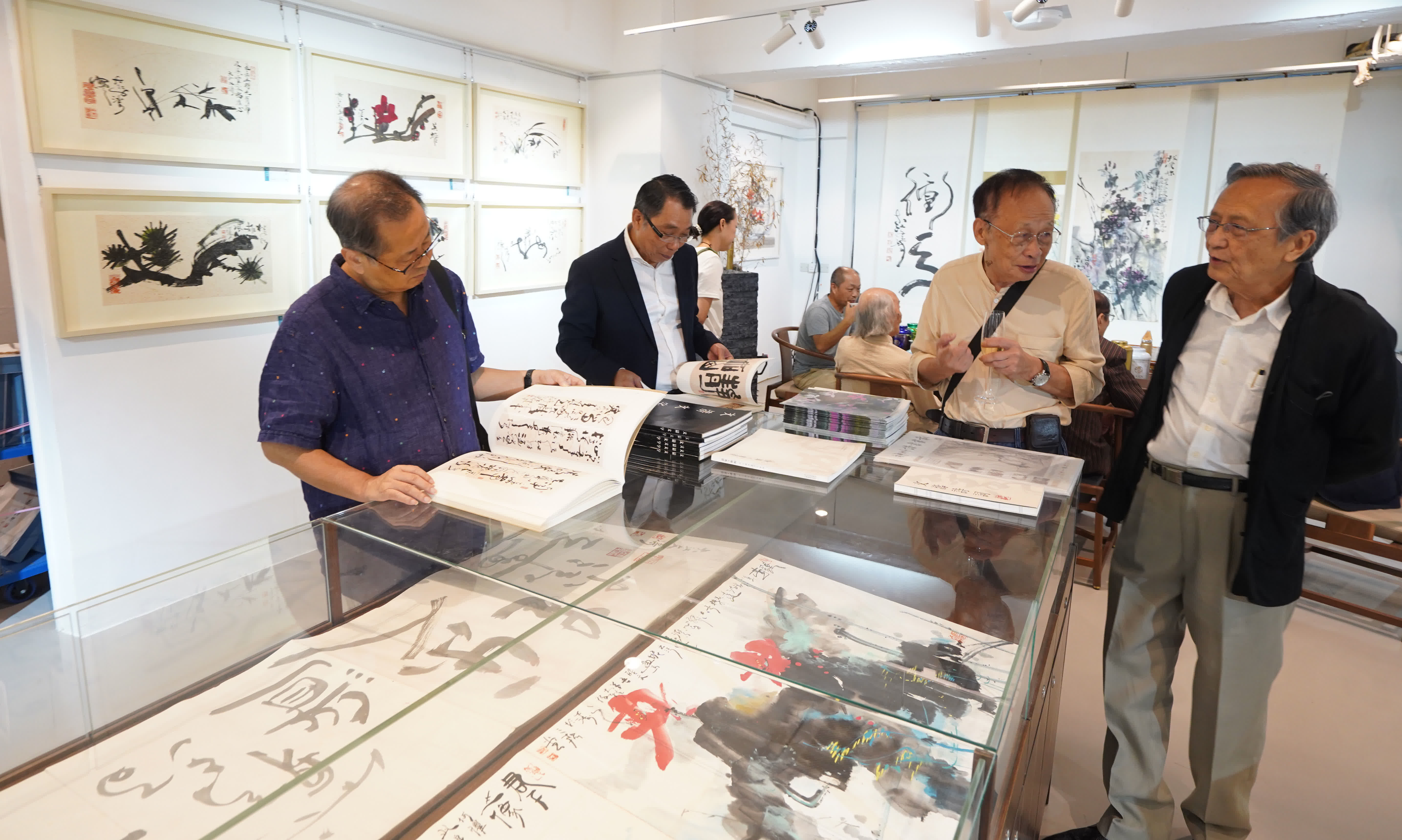 儀式過後,岑太太專門向記者介紹了今次展出的代表性書法、書畫作品,如草書六字聯「鯉魚門邊墨客,獅子山下神仙。」篆書五字聯「情牽中國夢,志繫蒼龍心。」岑文濤的字有着獨樹一幟的奔放瀟灑姿態,又喜歡亦書亦畫的演繹,近看是畫,遠看是字,一幅《君子圖像》就將「梅」字入畫,再配上其所作的詩,用詩書畫將梅花描繪得栩栩如生。