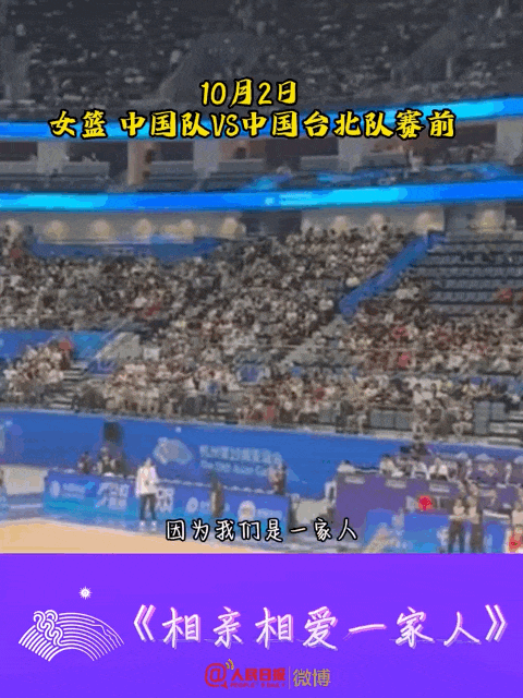 10月2日的女籃比賽中,中國隊對陣中國台北隊,賽前播放的《相親相愛一家人》瞬間將現場氣氛點燃。